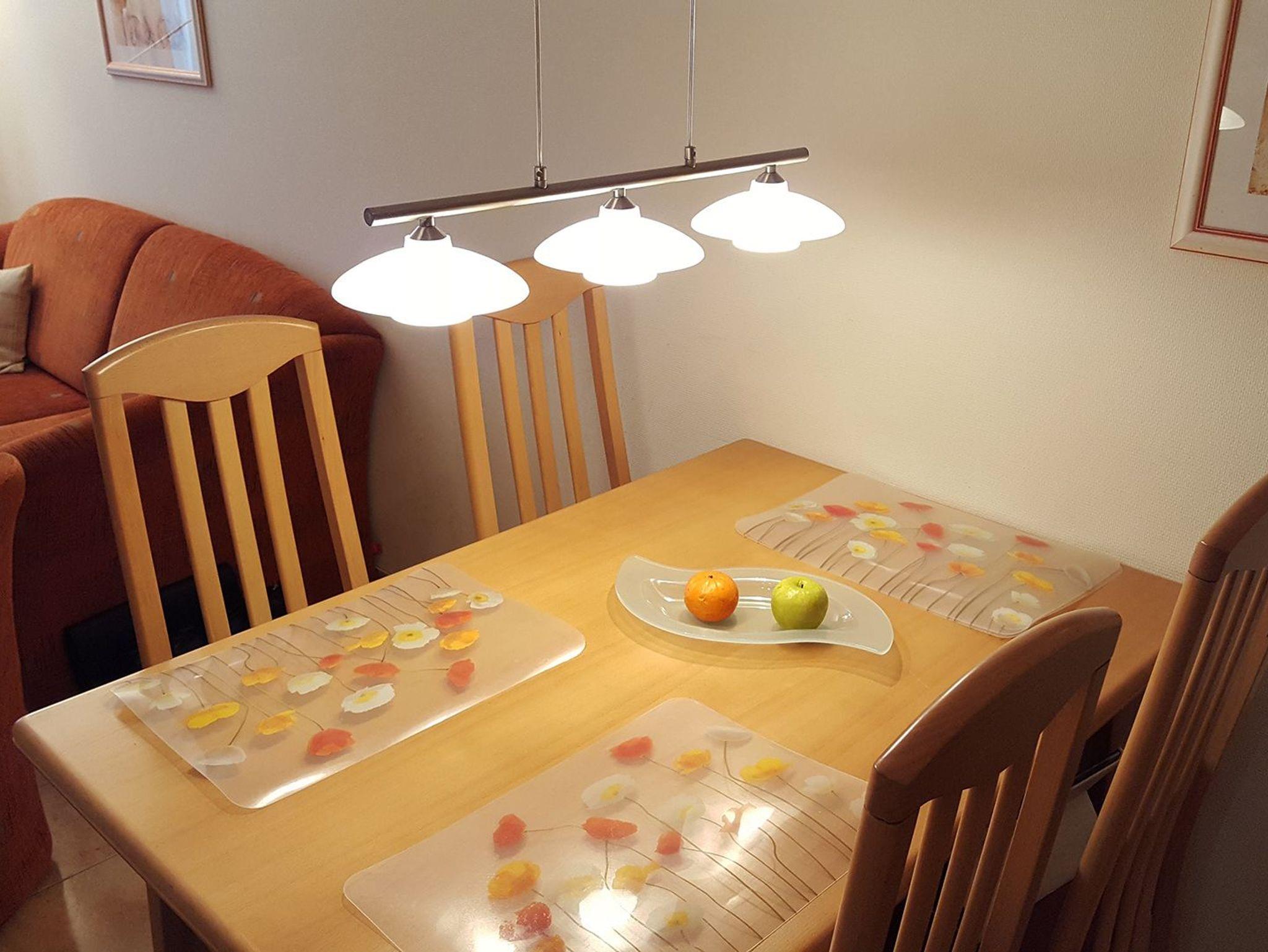 Das freundliche Wohnzimmer mit einer bequemen Schlafcouch ist ebenfalls mit allem ausgestattet, das Sie zu einem entspannenden Aufenthalt benötigen. Zur Unterhaltung stehen Ihnen Fernseher, Kompaktanlage, eine Spielesammlung und Lesestoff zur Verfügung.
