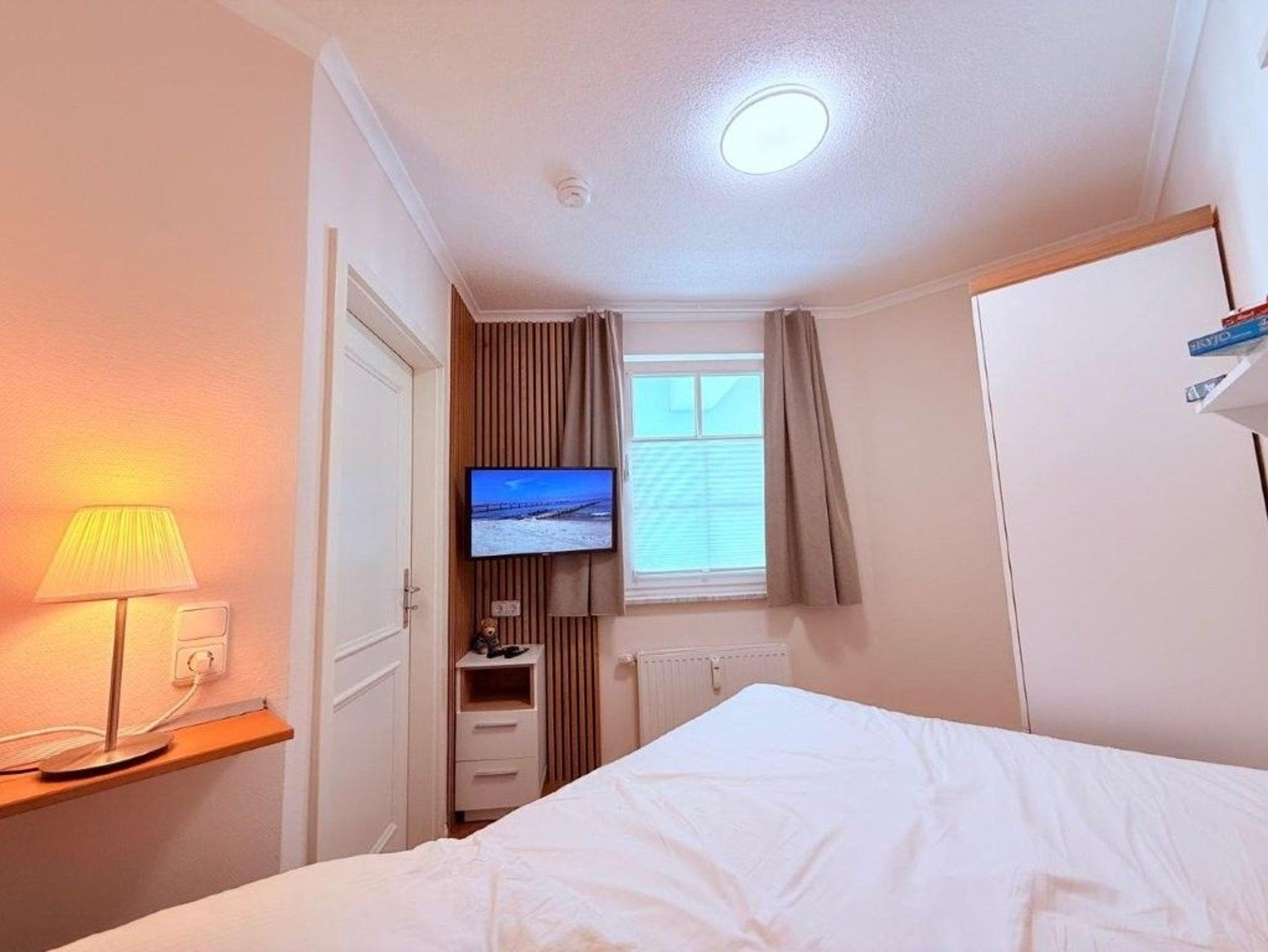 - 2. Schlafzimmer mit Boxspringbett (Breite 1,40m) und Kleiderschrank, TV