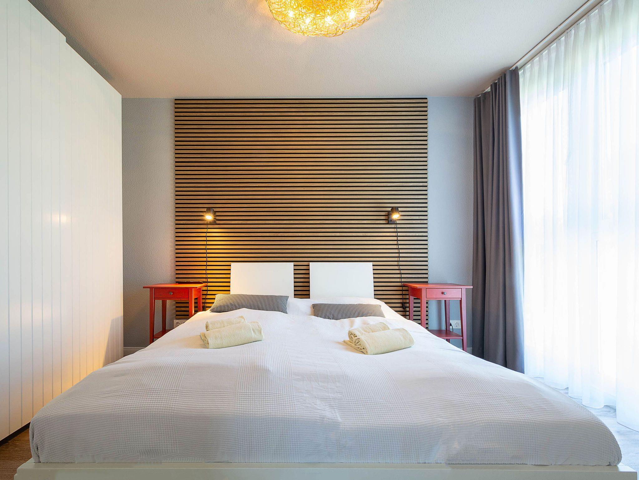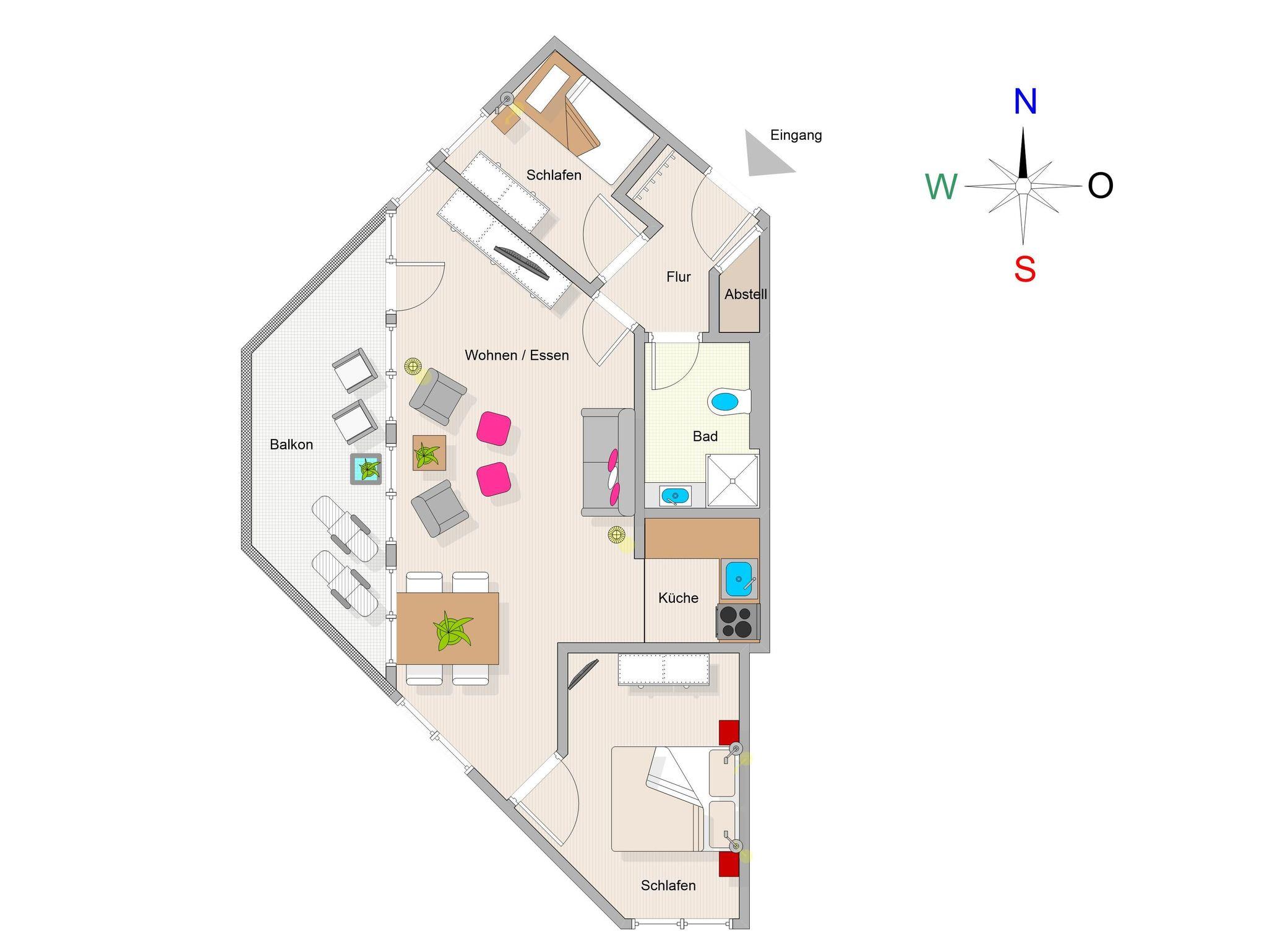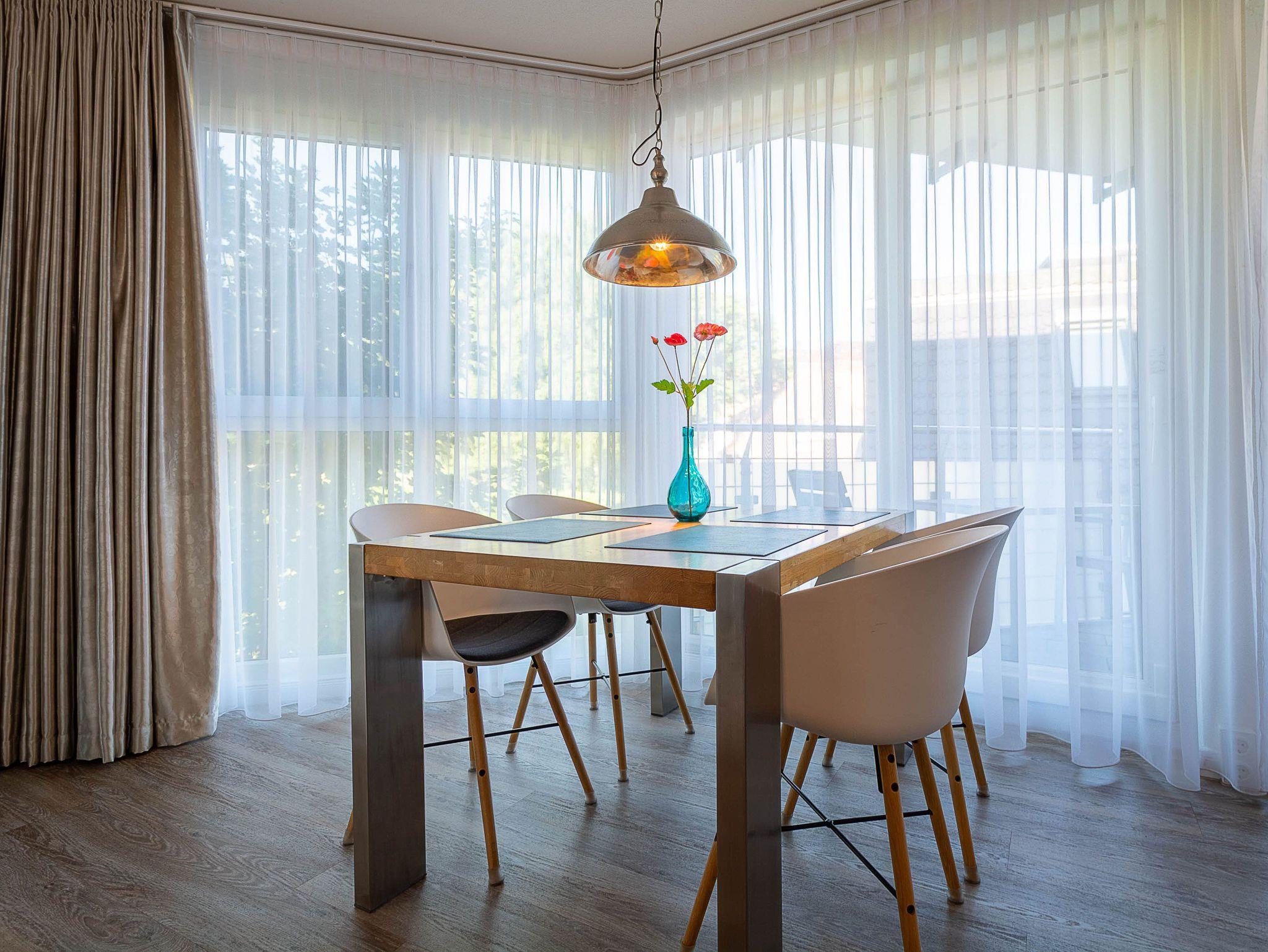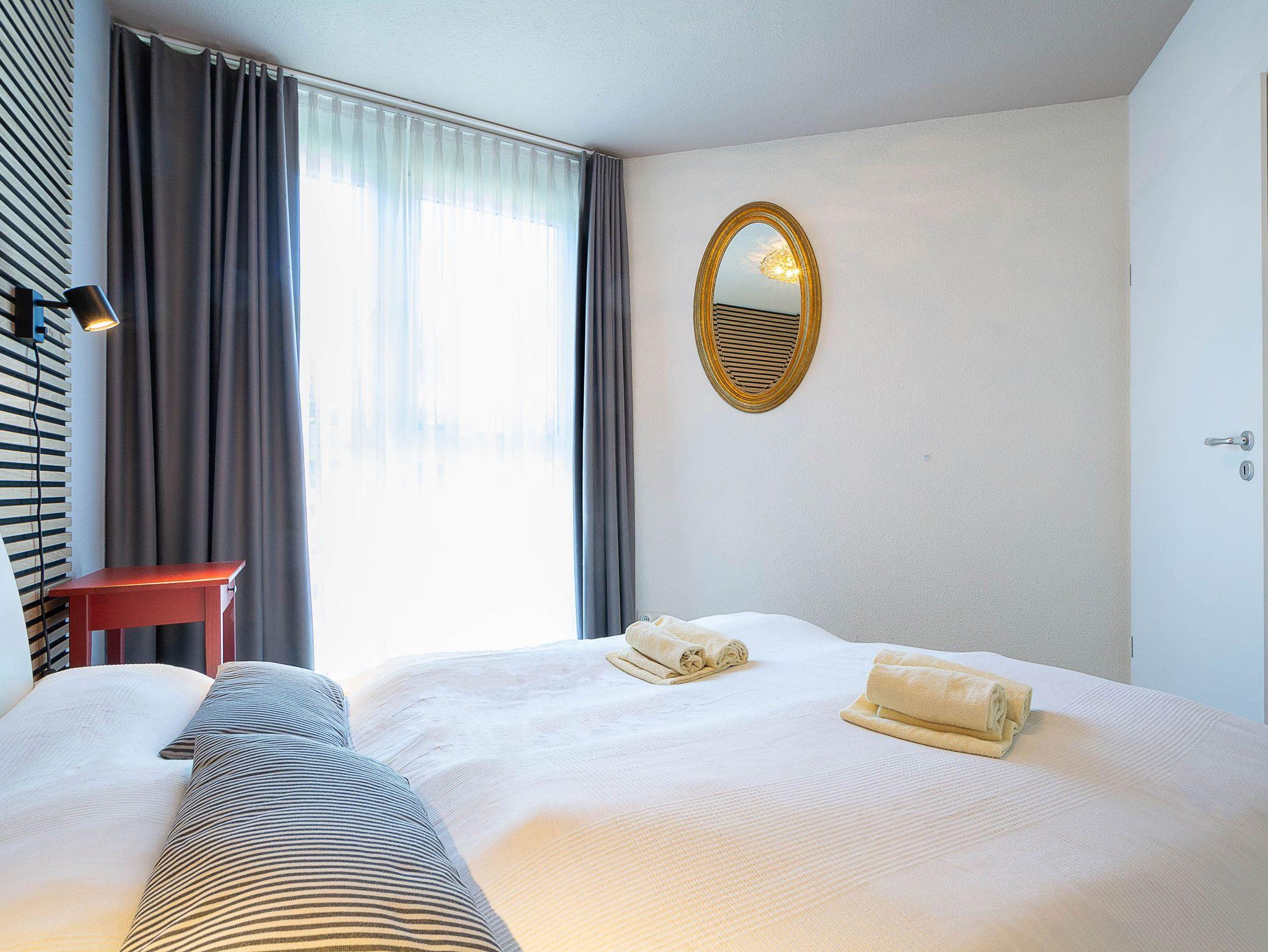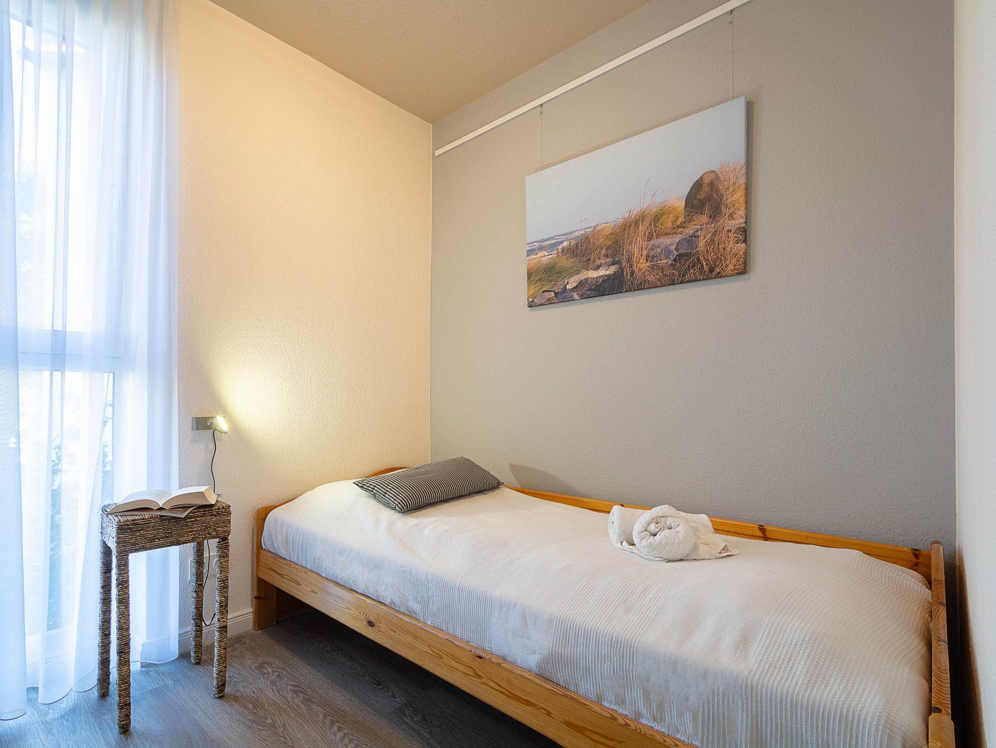 Ihre Wohnung Kleine Auszeit kombiniert moderne Architektur mit zeitgemäßem Luxus! Freuen Sie sich mit bis zu 3 Personen auf geschmackvolles Interieur, hochwertige Einbauten & einen wunderschönen zum Südwesten ausgerichteten sonnigen Balkon. Der seitliche Seeblick ist nur durch den typischen Grüngürtel in den Sommermonaten leicht verdeckt. Das alles in bester, zentraler Lage, mit dem weitläufigen Strand gleich vor der Haustür. Gelangen Sie bequem mit dem Aufzug ins 1 OG. Sie entspannen sich in einer komfortablen, liebevoll eingerichteten 55 qm großen 3-Raum-Wohnung. Der Wohn-Essbereich ist ausgestattet mit einer Recamiere und separatem Lounge Sessel, großem LED-TV, Kompakt-Stereoanlage und einem stilvollen Essbereich. Die offene Küche ist mit hochwertigen Elektrogeräten ausgestattet. Genießen Sie auch im Urlaub den Komfort eines Geschirrspülers, Cerankochfeldes oder einer Kombi-Mikrowelle. Kaffeemaschine und Wasserkocher sind ebenso vorhanden wie ein Toaster. Im Master-Schlafzimmer befindet sich ein Doppelbett mit einem weiteren LED-TV und im zweiten kleinen Schlafzimmer ein Einzelbett - beide jeweils mit einem geräumigen Kleiderschrank. Das geschmackvolle Bad mit Dusche, WC, Fön und Waschtisch komplettieren das Gesamtbild.