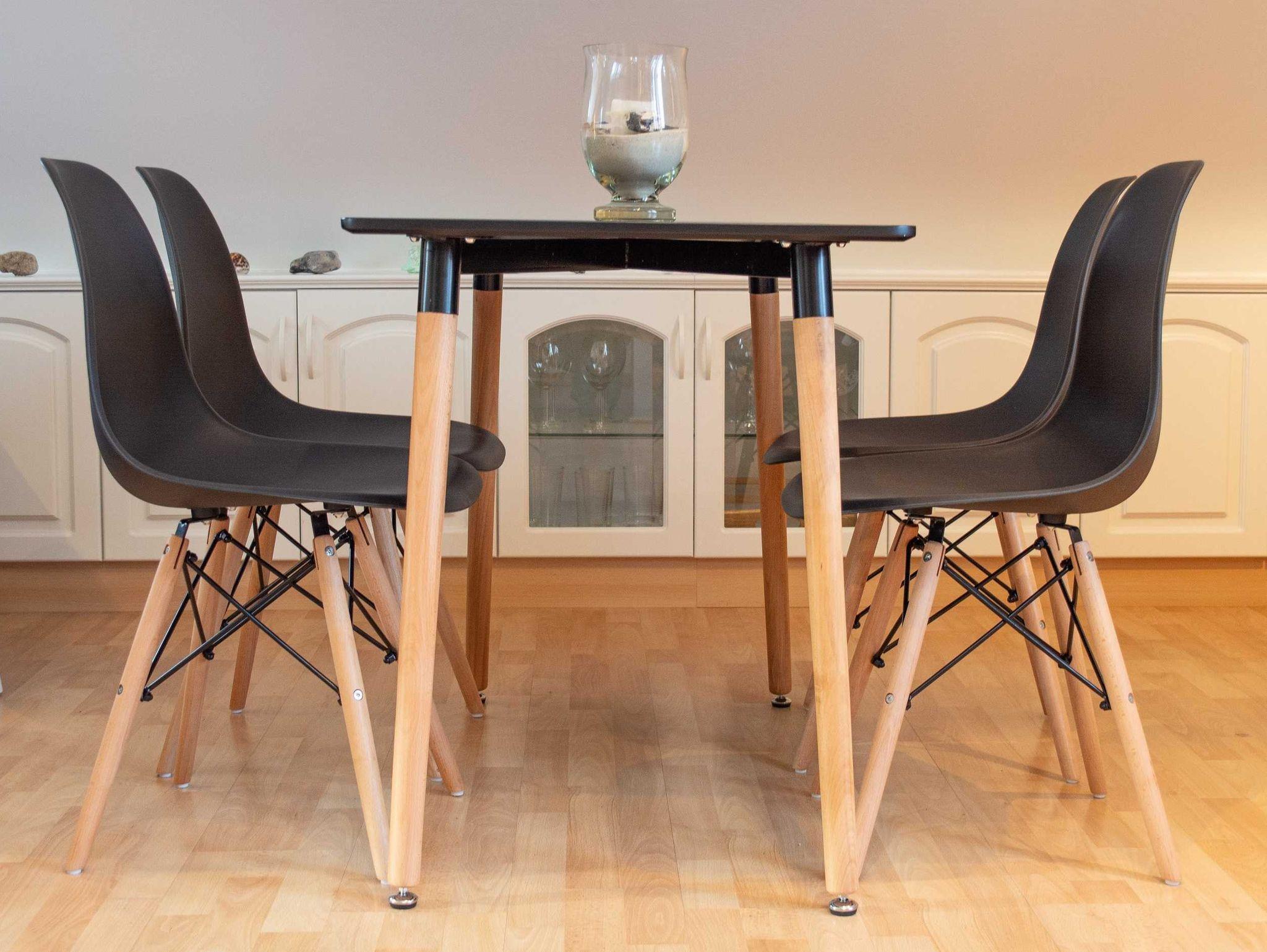 Die angrenzende offene Küchenzeile ist mit einem Kühlschrank, einem Geschirrspüler, einem 4-Platten-Cerankochfeld mit Backofen und einer Mikrowelle voll ausgestattet. Vervollständigt wird die Ausstattung der Küche durch einen Toaster, einen Wasserkocher und eine Kaffeemaschine. Am Esstisch haben Sie genügend Platz für gemeinsame Mahlzeiten.