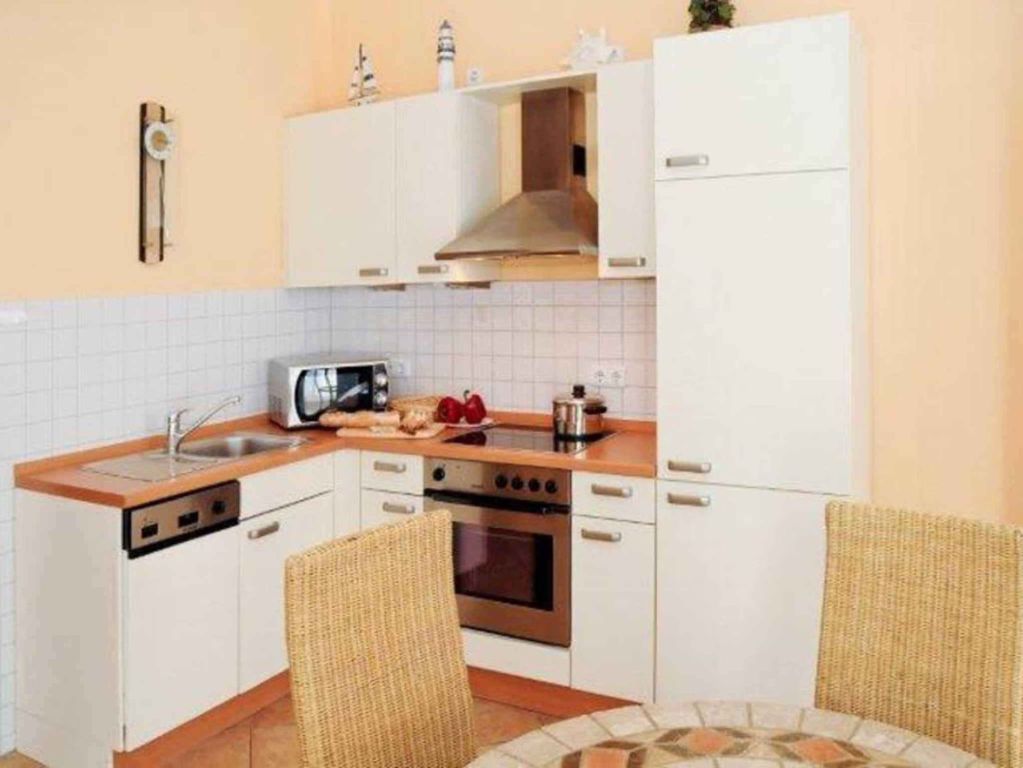 - Küchenzeile - Herd mit Backröhre, Mikrowelle, Kühlschrank und Geschirrspüler