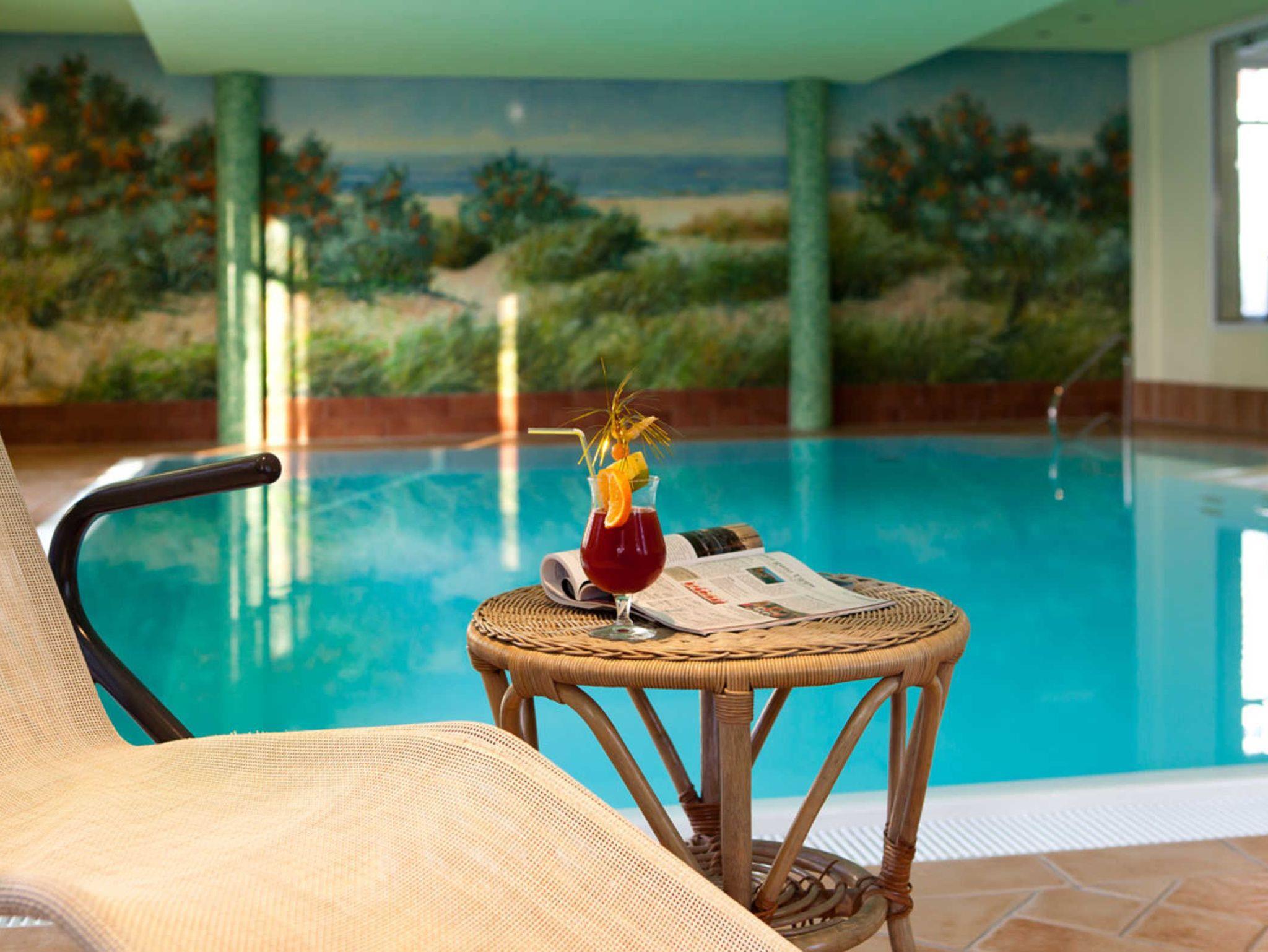 Der großzügig ausgebaute SPA-Bereich mit Schwimmbad (29° C Wassertemperatur) und Saunabereich runden gerade auch im Winter die Erholung am Weststrand ab. Die Nutzung des Schwimmbades und der Sauna sind bereits inklusive. Gäste haben zusätzlich die Wahl Massagen, Beautypaketen und Gesundheitsanwendungen.