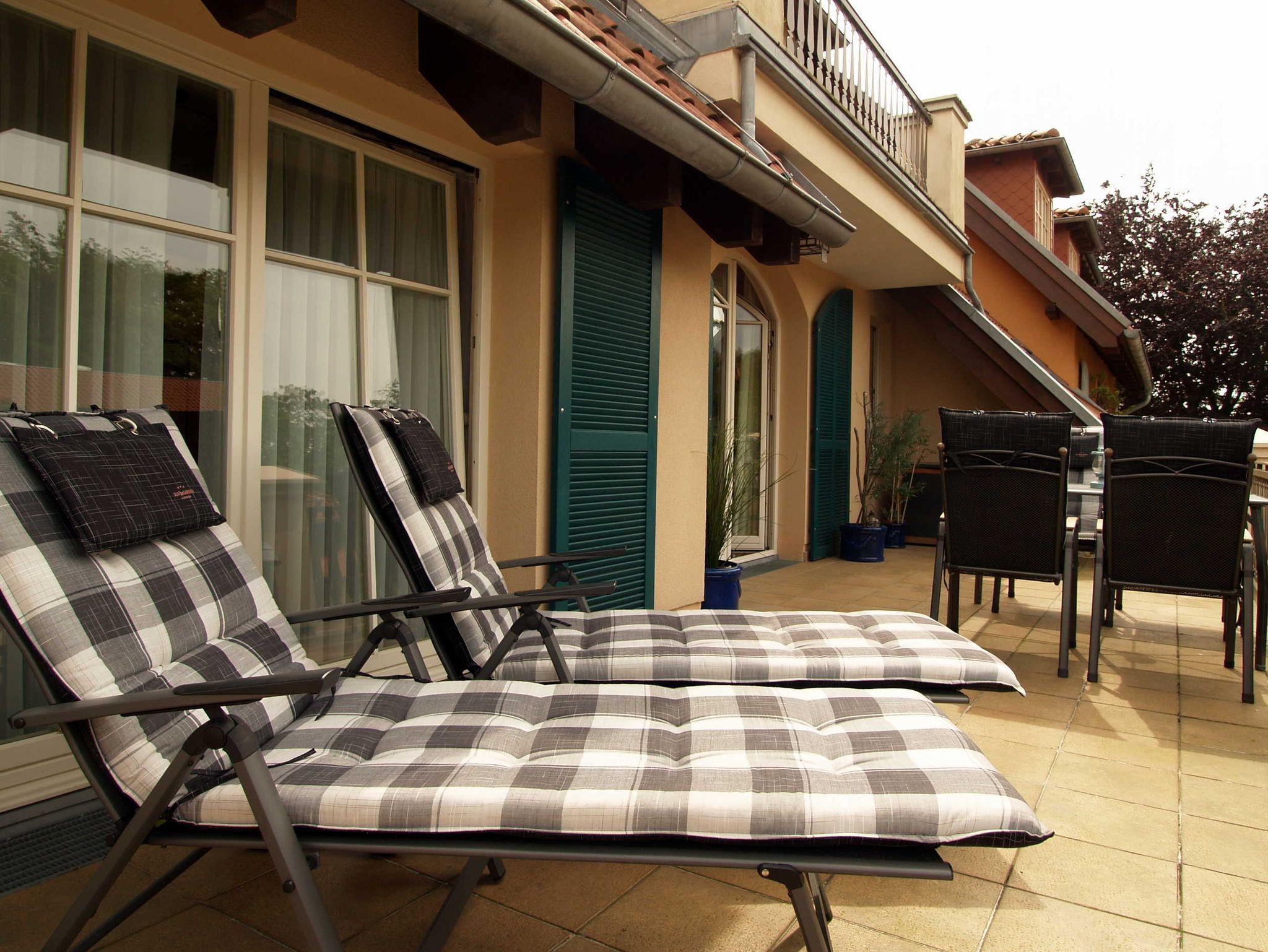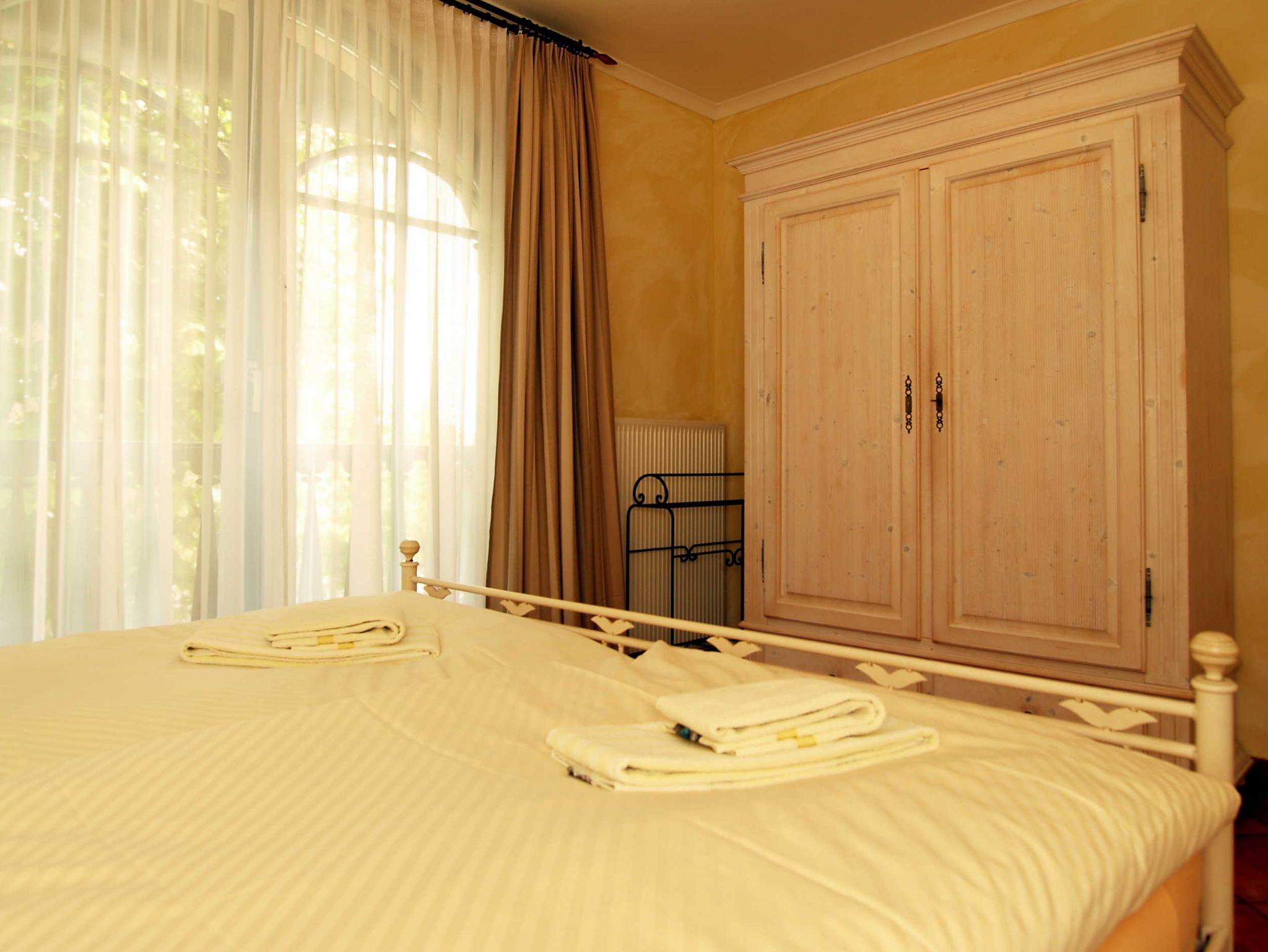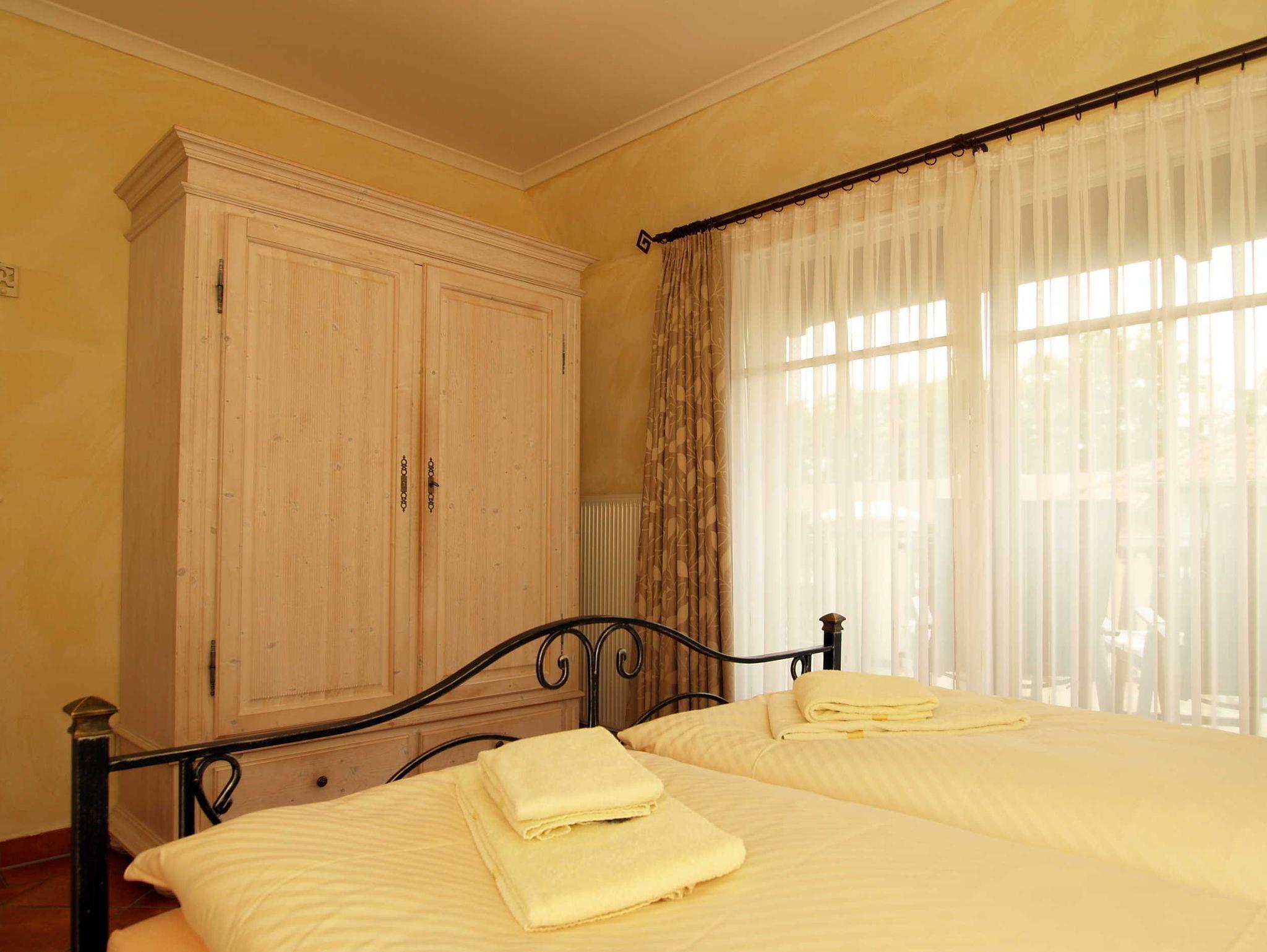 Herzlich willkommen in der Residenz Laguna! Sie wohnen in einer 73 m² großen 3-Raum-Ferienwohnung, die sich im 2. Obergeschoss befindet und für 2 bis 4 Personen geeignet ist. Der liebevoll im mediterranen Stil eingerichtete Wohnraum ist ausgestattet mit einer Sitzecke, einem Flat Screen TV und einer Stereoanlage. Dem schließt sich der Essbereich sowie die moderne und offen gestaltete Küchenzeile an, die mit allen wichtigen Küchengeräten und -utensilien ausgestattet ist, die Sie für Ihr „perfektes Dinner“ benötigen (4-Platten-Cerankochfeld mit Backofen und Dunstabzug, Geschirrspüler, Kühlschrank, Kaffeemaschine, Wasserkocher, Toaster etc.). . Das Herz der Wohnung ist der große möblierte West-Balkon mit direktem Blick auf den wunderschönen Innenhof und die mediterrane Teichlandschaft. Hier können Sie Sonnenbaden, Relaxen oder den Abend zu einem Glas Wein ausklingen lassen. Ein weiterer Balkon in Richtung Osten ist über den offenen Wohn- und Essbereich erreichbar. Die Wohnung ist durchgehend mit mediterranen Fliesen versehen. Die beiden Schlafzimmer sind jeweils ausgestattet mit einem Doppelbett und einem geräumigen Kleiderschrank für Ihre Urlaubsgarderobe. Von einem der beiden Schlafzimmer können Sie ebenfalls den großen West-Balkon betreten. Das ebenfalls im mediterranen Stil geflieste Tageslichtbad ist mit einer Dusche und WC ausgestattet und sorgt dank eines Badheizkörpers für immer kuschlig warme Handtücher.
