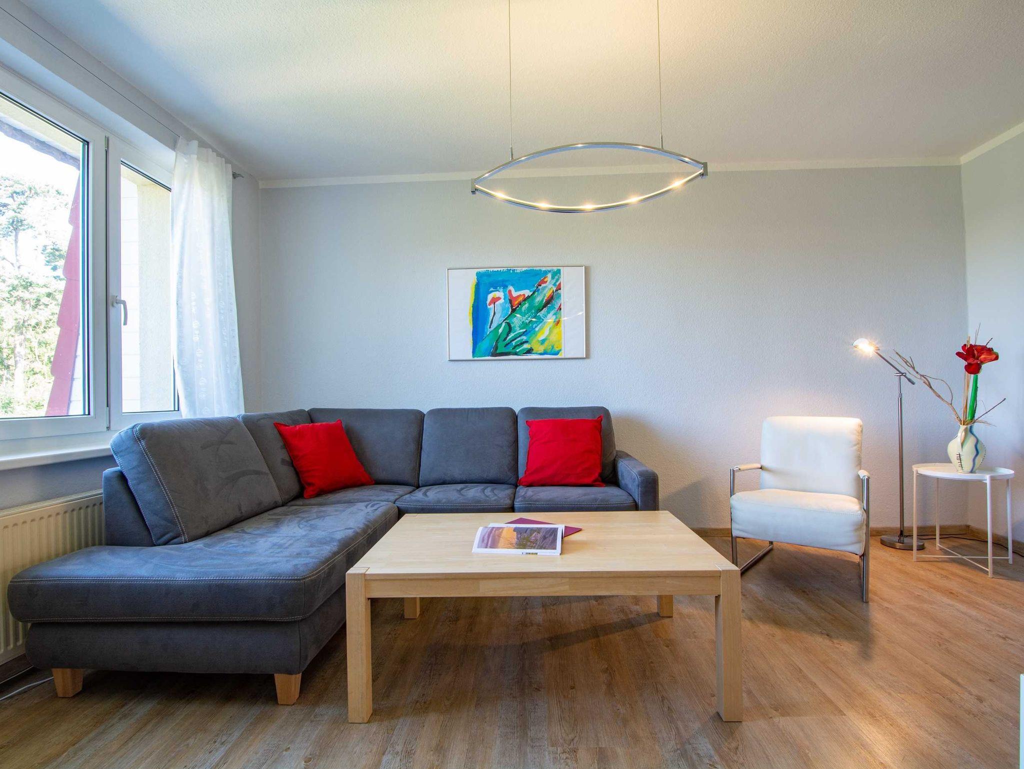 Diese liebevoll maritim eingerichtete 3-Raum-Ferienwohnung befindet sich im 2. Obergeschoss der gepflegten Residenz Dünengarten und bietet auf ca. 80m² ausreichend Platz für bis zu 5 Personen.