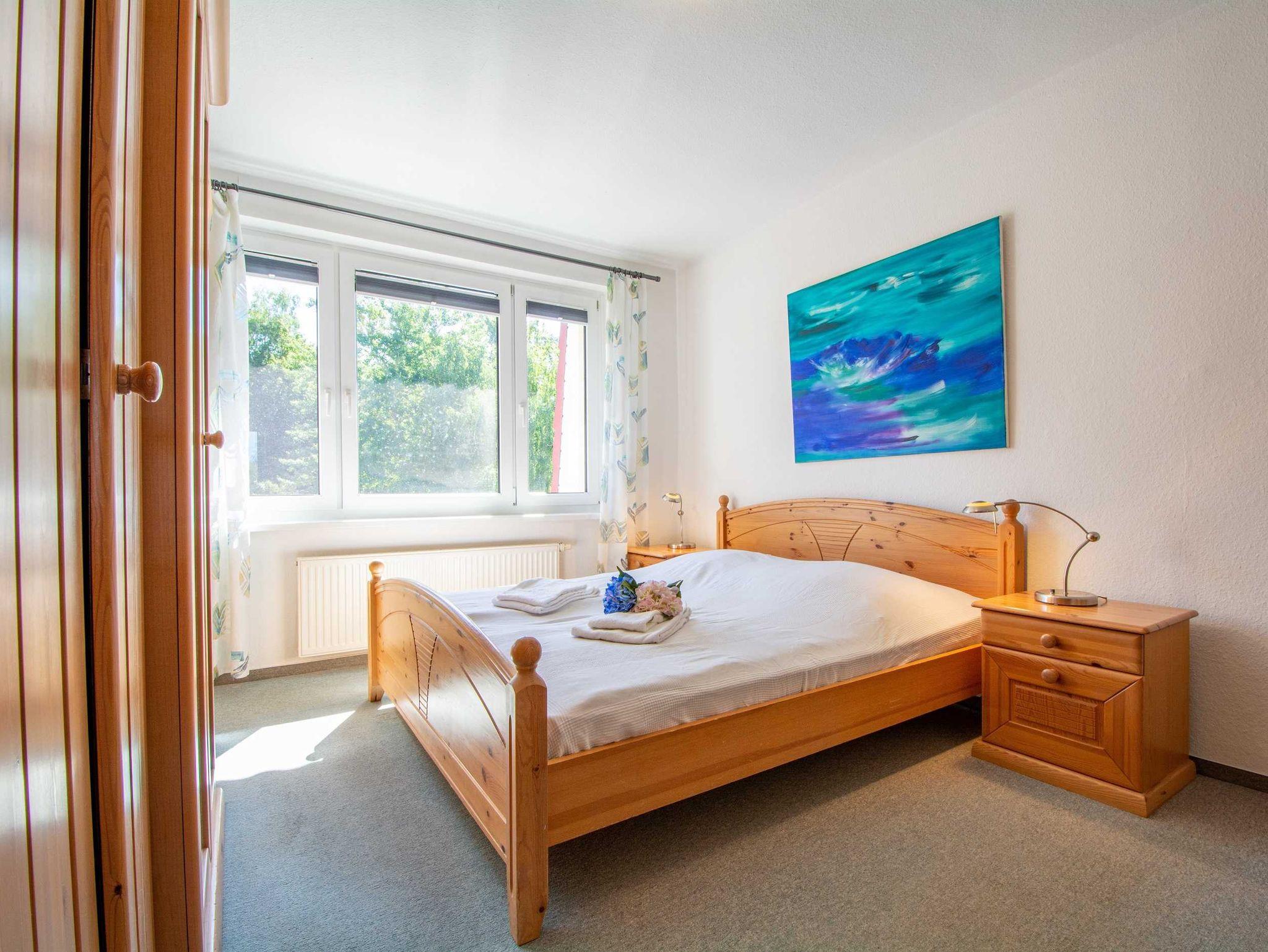 Zwei separate Schlafzimmer sorgen für erholsamen Schlaf ? eines mit einem gemütlichen Doppelbett, das andere mit zwei Einzelbetten. Das Badezimmer ist mit Dusche und WC ausgestattet, zusätzlich steht Ihnen ein Gäste-WC zur Verfügung ? besonders praktisch bei Belegung mit mehreren Personen.