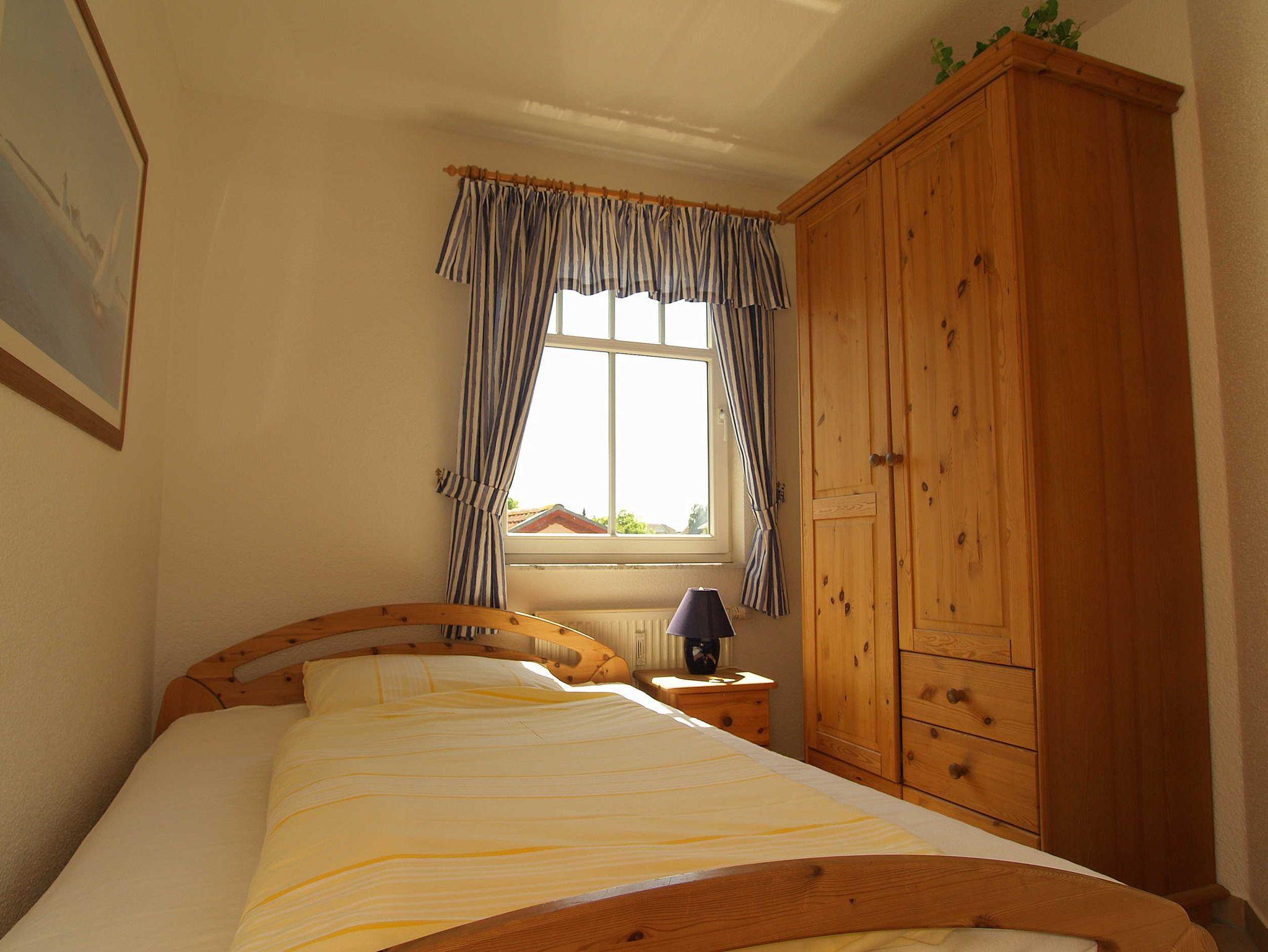 Im ersten Schlafzimmer lädt Sie ein komfortables Doppelbett (2 x 90cm x 200 cm) zur Nachtruhe ein. Der großzügige Kleiderschrank mit Ganzkörperspiegel bietet genügend Platz für Ihre Urlaubsgarderobe. Das zweite Schlafzimmer ist mit einem französischen Bett (140cm x 200cm) und einem Kleiderschrank versehen. Das Tageslichtbad mit Dusche und WC vervollständigt das Gesamtbild dieser Wohnung.
