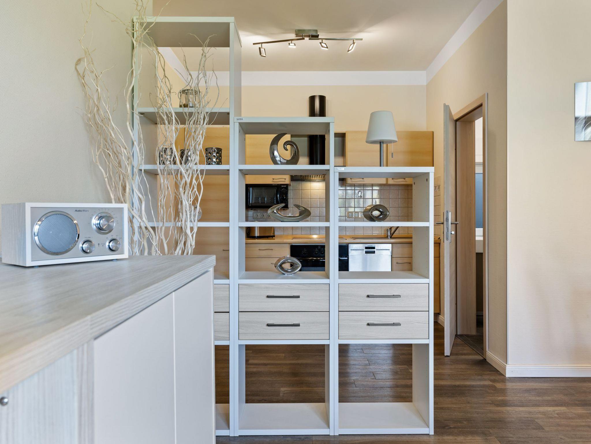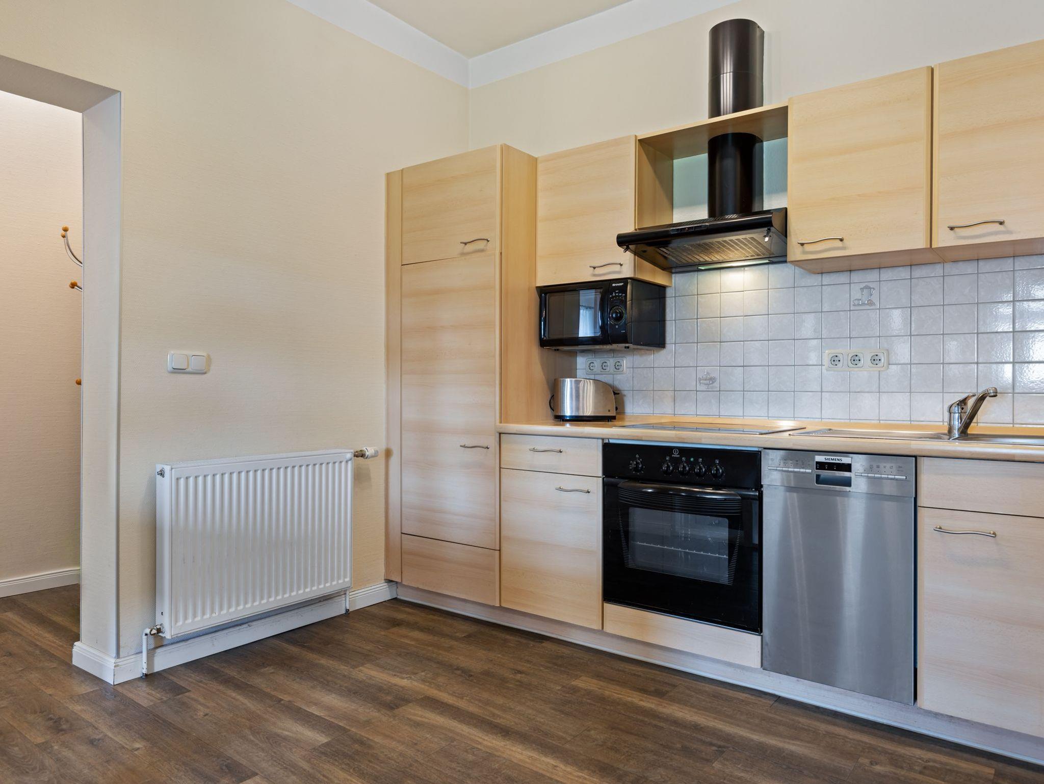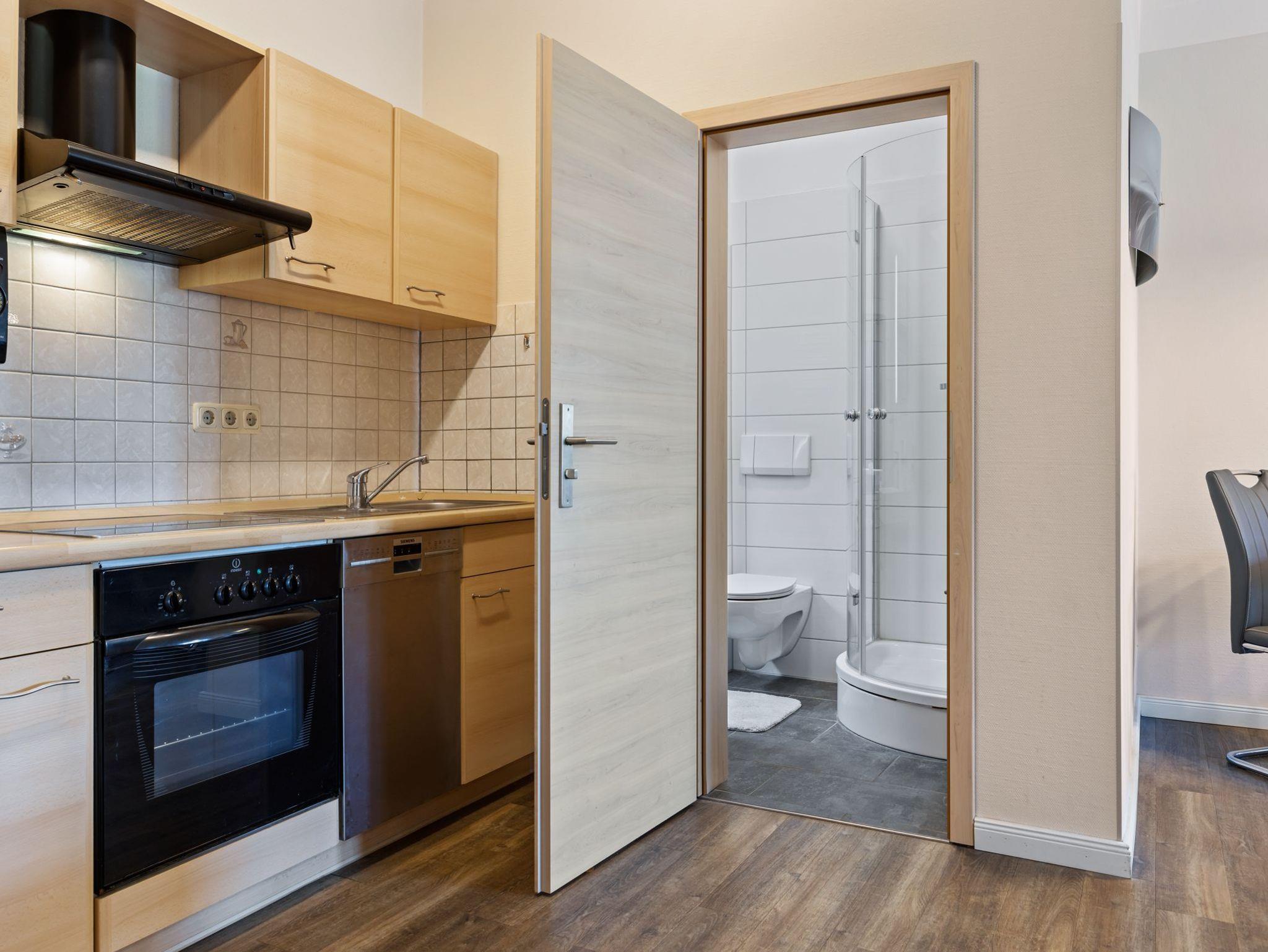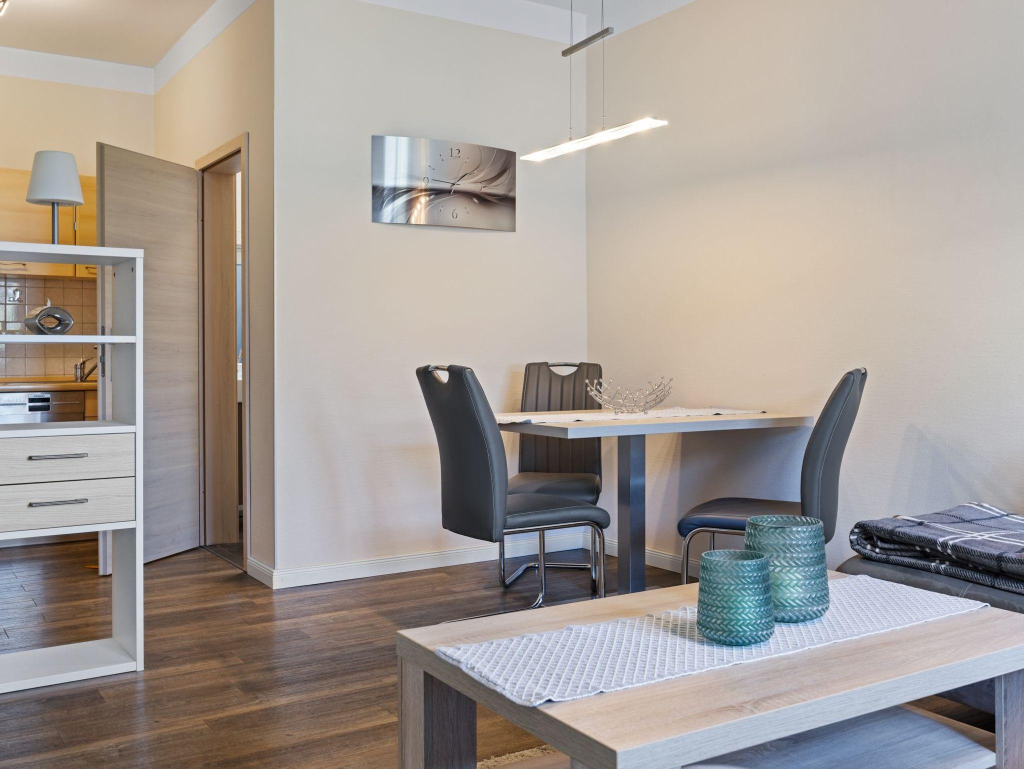Die Ferienwohnung Nr. 1 befindet sich im Erdgeschoss und verfügt über einen Wohn- Essbereich mit gemütlicher Sofaecke, Esstisch und offener Küche. Die Küche ist umfangreich ausgestattet mit Herd und Backofen, Geschirrspüler, Filter- Kaffemaschine sowie Dolce Gusto Capmaschine, Wasserkocher, Toaster, Kühlschrank mit Gefrierfach. Schlafzimmer mit Doppelbett (1,80m*2m) und Kleiderschrank. Bad mit Dusche und WC.