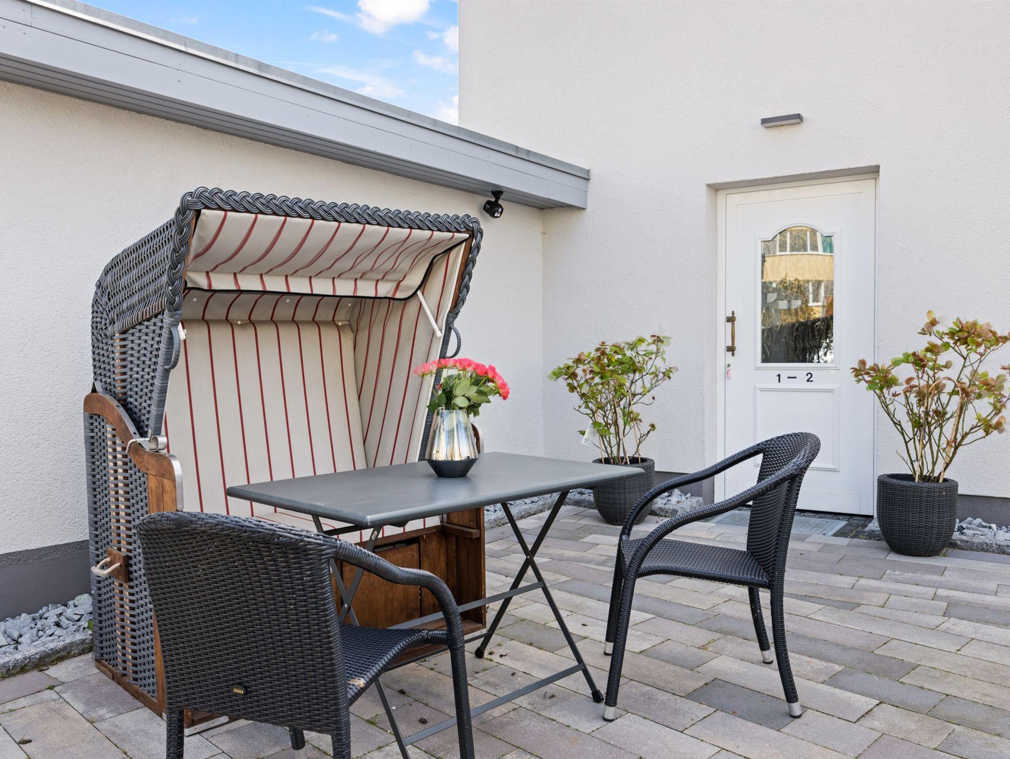 Die drei Ferienwohnungen sind umfangreich und komfortabel ausgestattet und bieten Platz für 2 - 4 Gäste und jeweils ein Kleinkind. Jede Wohnung verfügt über einen Terrassenbereich mit Strandkorb und der Garten bietet viel Platz zum Erholen, Spielen, Draußensein.