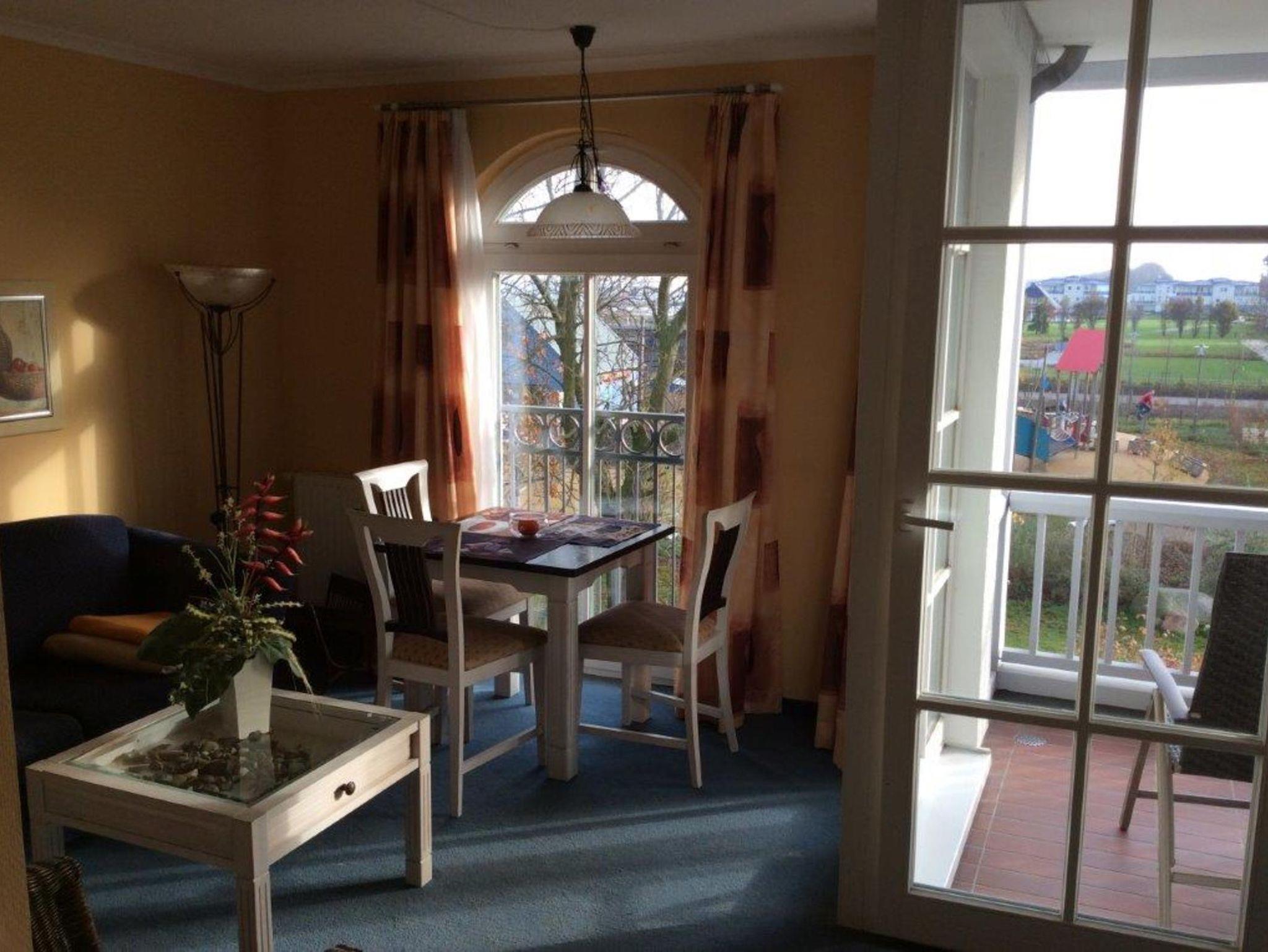 Modernes 3-Zimmer-Appartement in Kühlungsborn mit möbliertem Balkon und seitlichem Meerblick.