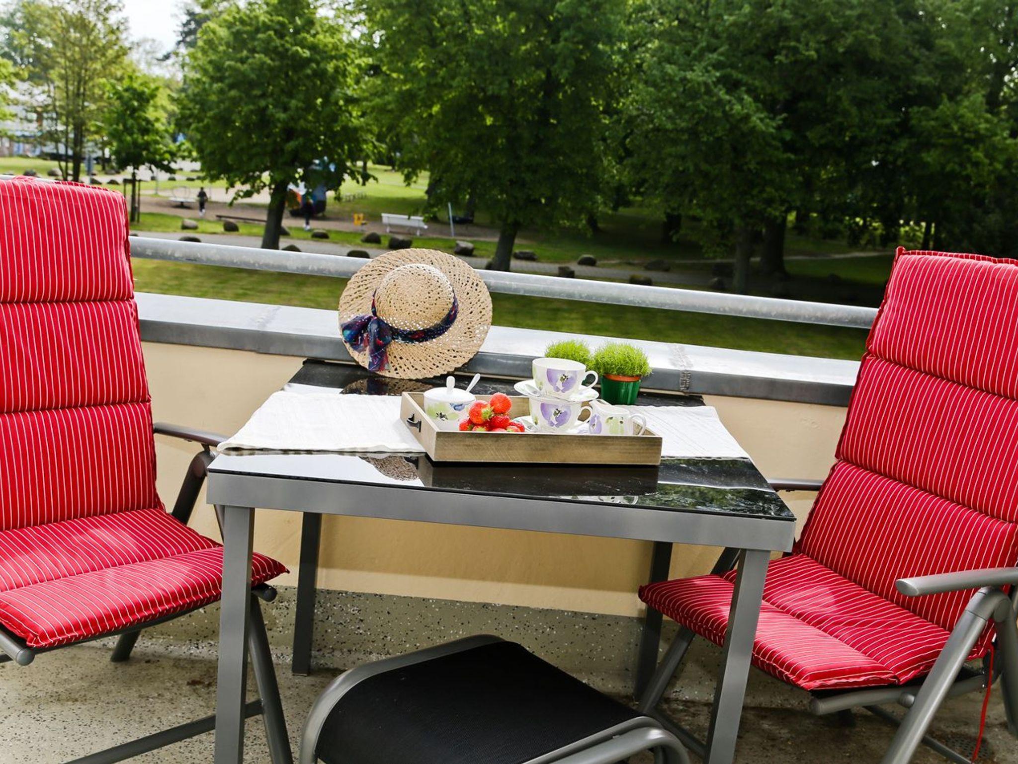 Charmante 2-Zimmer-Ferienwohnung im Zentrum von Kühlungsborn mit Balkon und Blick auf den Baltic-Park, nur 2 Gehminuten vom Strand entfernt.