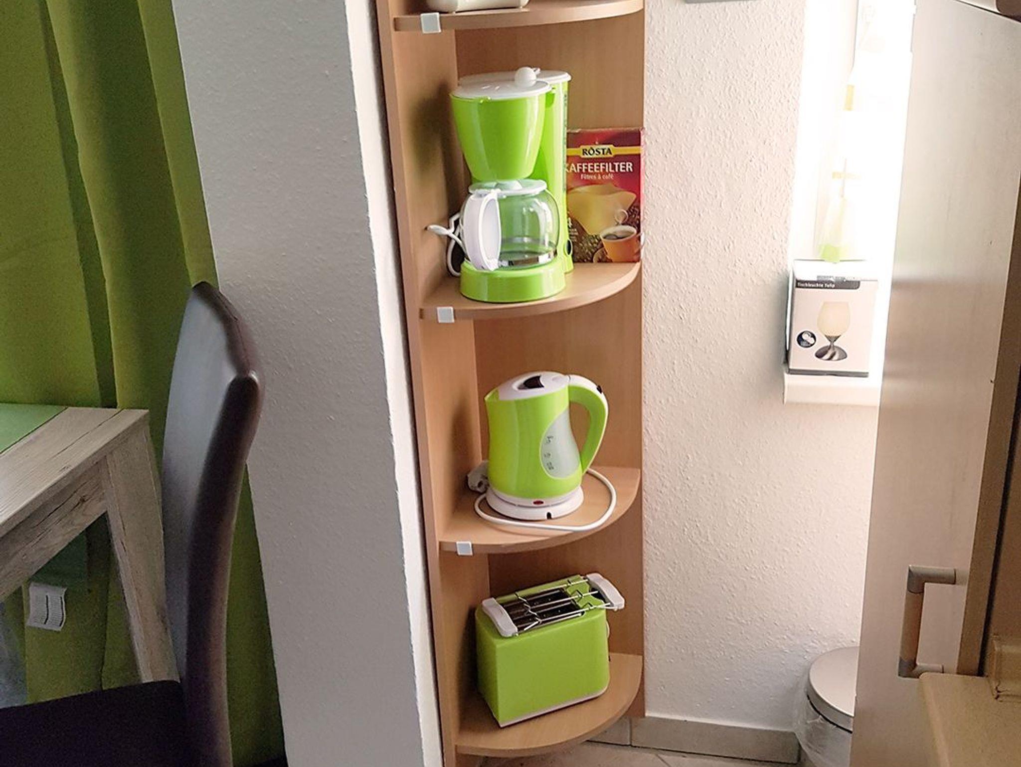 Die Pantry mit 2-Platten-E-Herd und Mikrowelle ist im Wohnbereich integriert. Zusätzlich finden Sie ein Tageslichtbad mit Badewanne und WC.