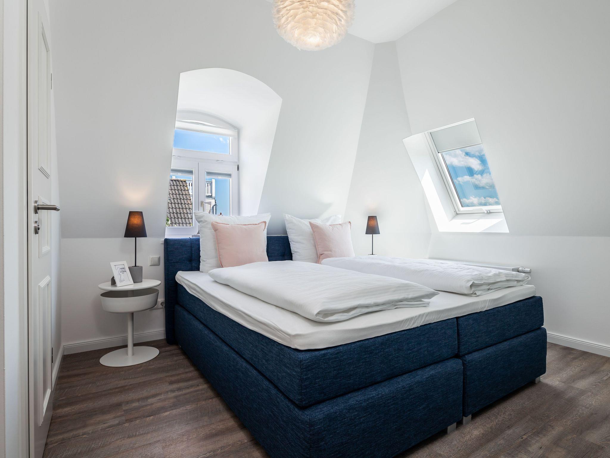 1. Schlafzimmer mit Doppelbett und Anrichte