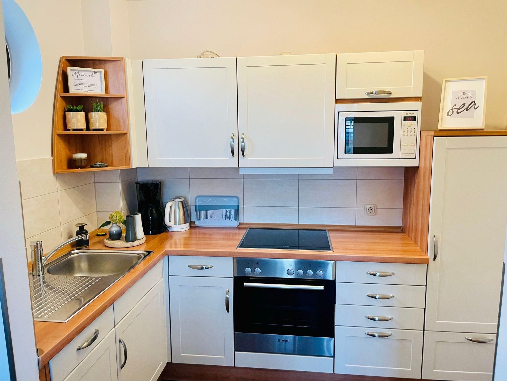 - Küchenzeile - Herd mit Backröhre, Mikrowelle, Kühlschrank mit Gefriermöglichkeit und Geschirrspüler