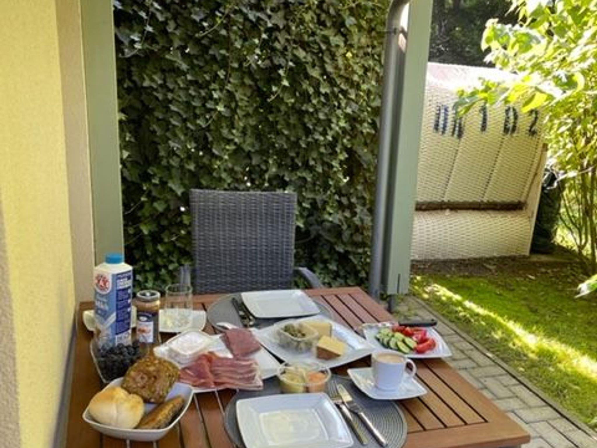 Frisch renovierte Erdgeschosswohnung mit Garten, Terrasse und Strandkorb in Kühlungsborn, ideal für 2 Personen.