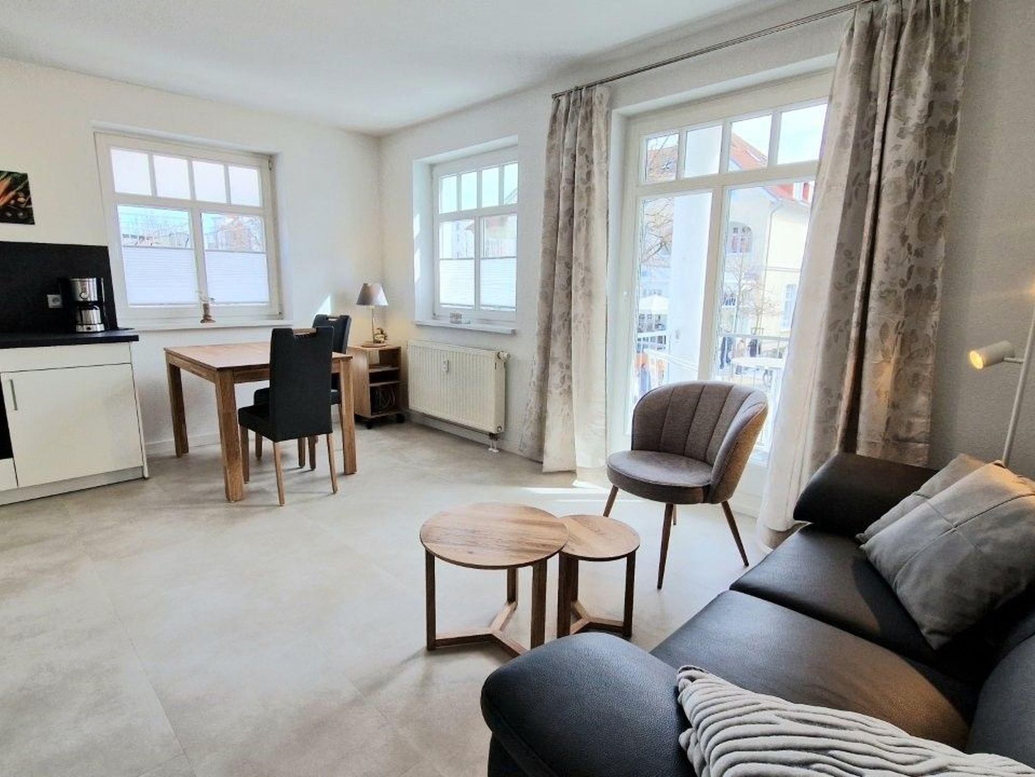 Modernes 2-Raum-Appartement in Kühlungsborn, nahe Strand, Seebrücke und Yachthafen, mit Balkon und seitlichem Meerblick.