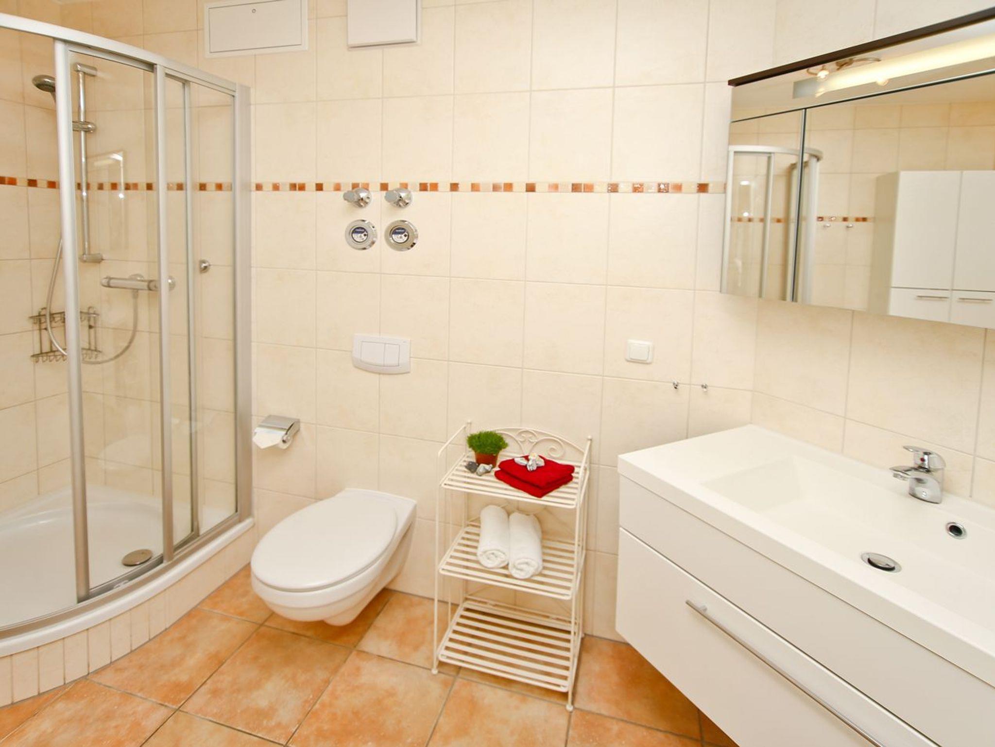 Die Wohnung ist mit Laminat verlegt worden. Ein Duschbad/WC ergänzt die Ferienwohnung.