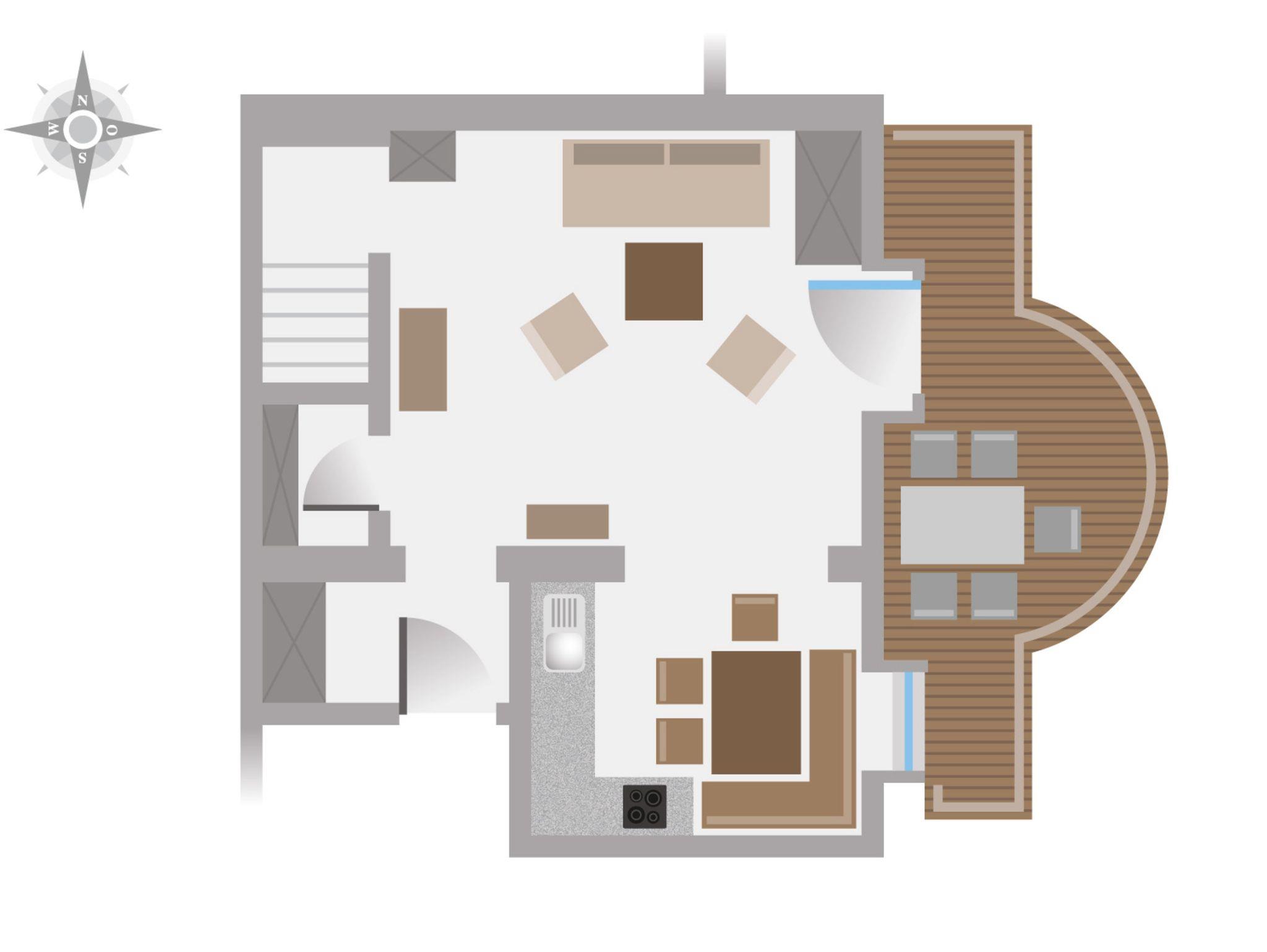 Bereits in den frühen Morgenstunden können Sie die Sonne auf dem großen Balkon genießen. Im unteren Geschoss bieten sich eine Küche mit gemütlichem Essbereich und Eckbank sowie der Wohnraum (mit Doppelbettcouch) zum gemütlichen Beisammensein an.