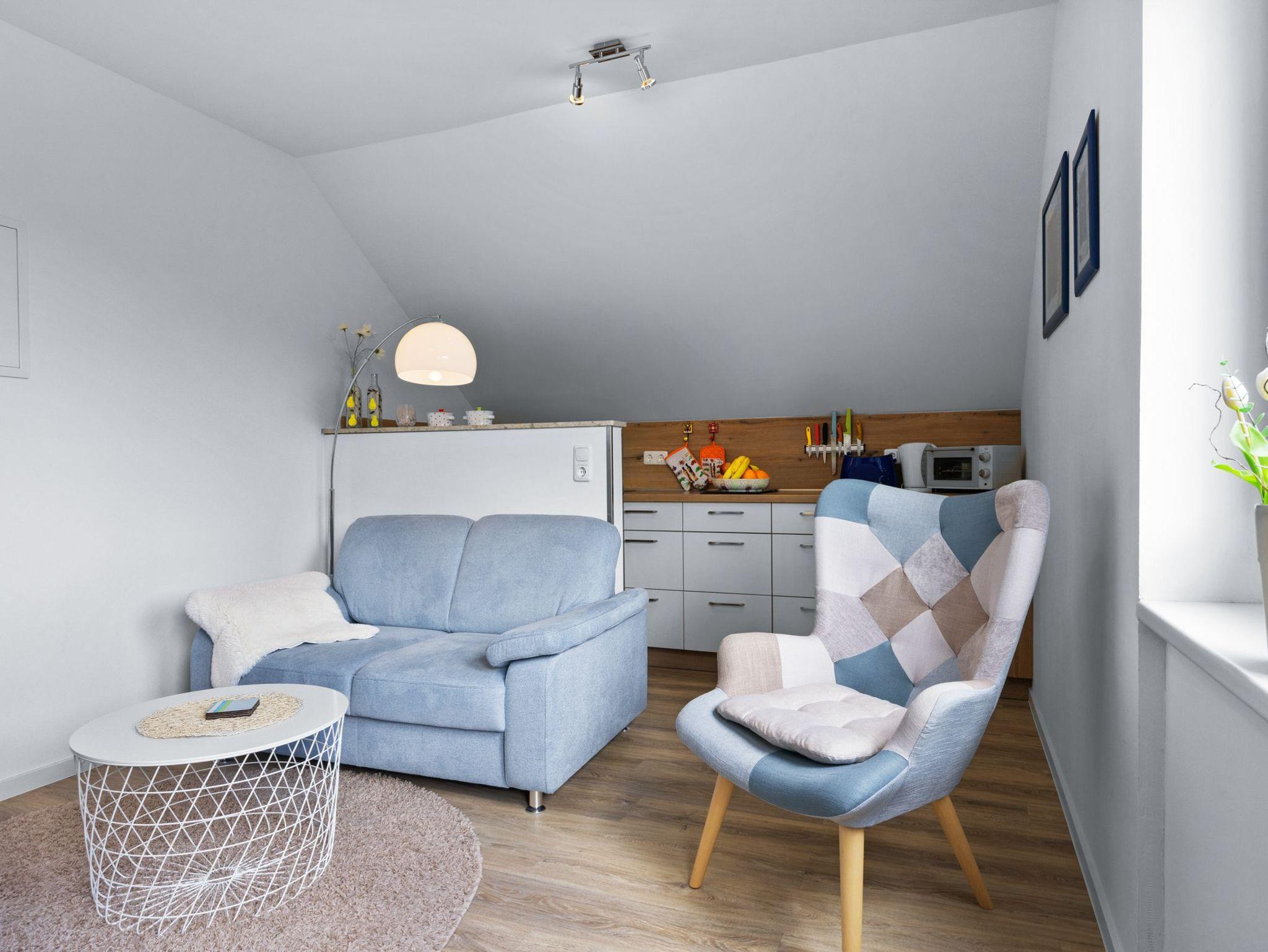 Fewo 2 für 2 Personen, Maisonette mit Wohnzimmer, Küchenzeile, Schlafzimmer mit 1 Doppelbett DU/WC.