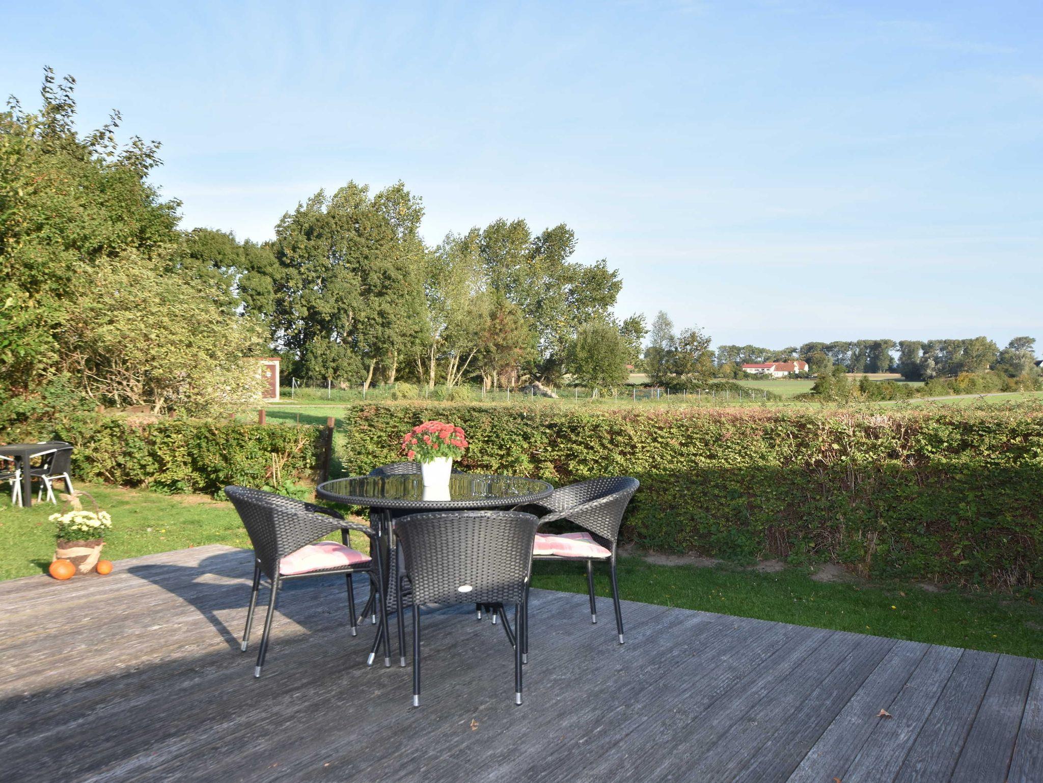 Zu jeder Wohnung gibt es einen separaten Sitzbereich im Garten oder eine direkt angeschlossene Terrasse. Im Garten erfreuen sich die Gäste an dem wunderbaren Weitblick bis zur Ostsee.