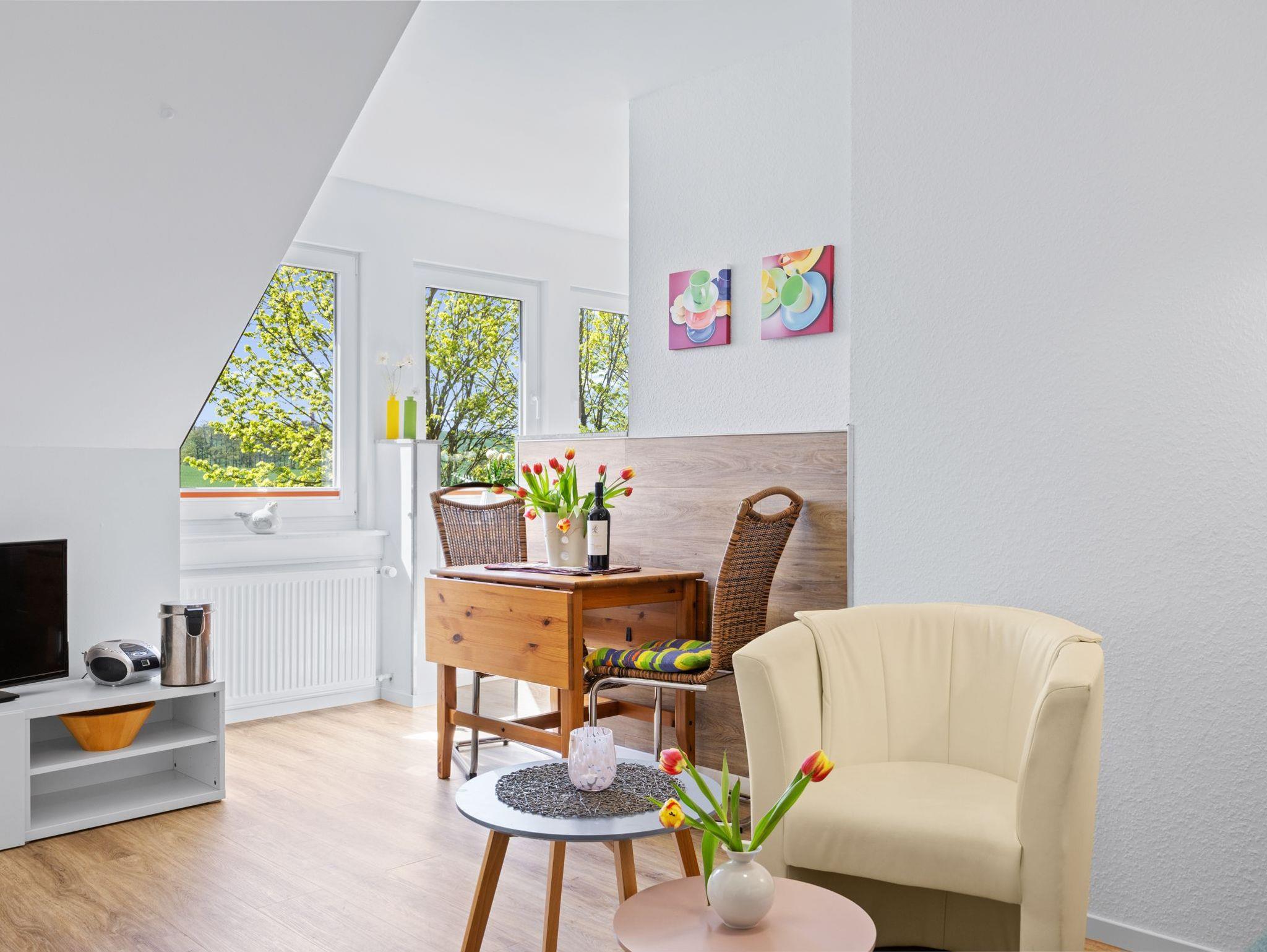 Fewo 1 für 3 Personen, Maisonette mit Wohnzimmer, Küchenzeile, Schlafzimmer mit 1 Doppelbett und 1 Zustellbett, DU/WC.
