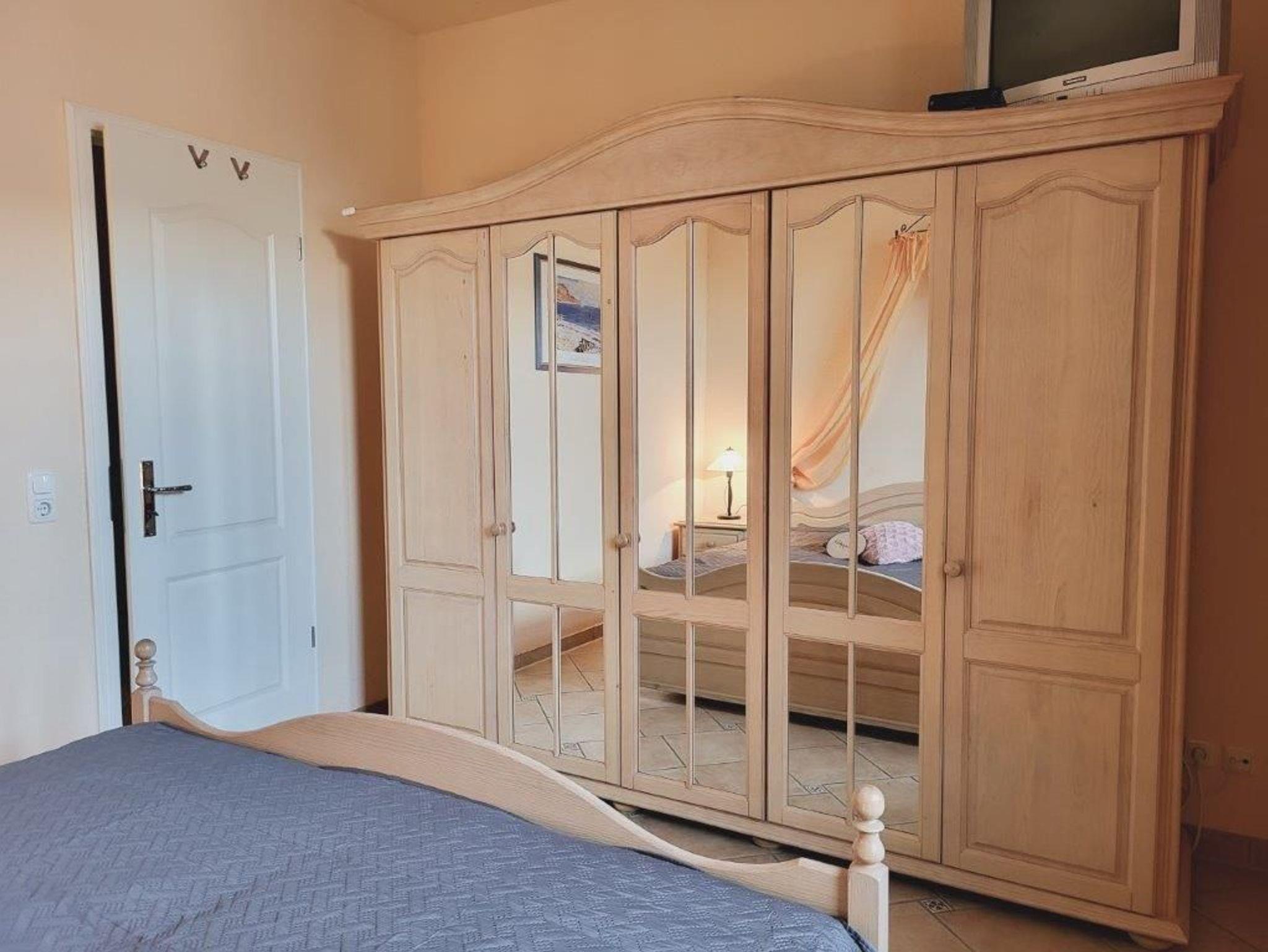 - 1. Schlafzimmer mit Doppelbett, Kleiderschrank und TV