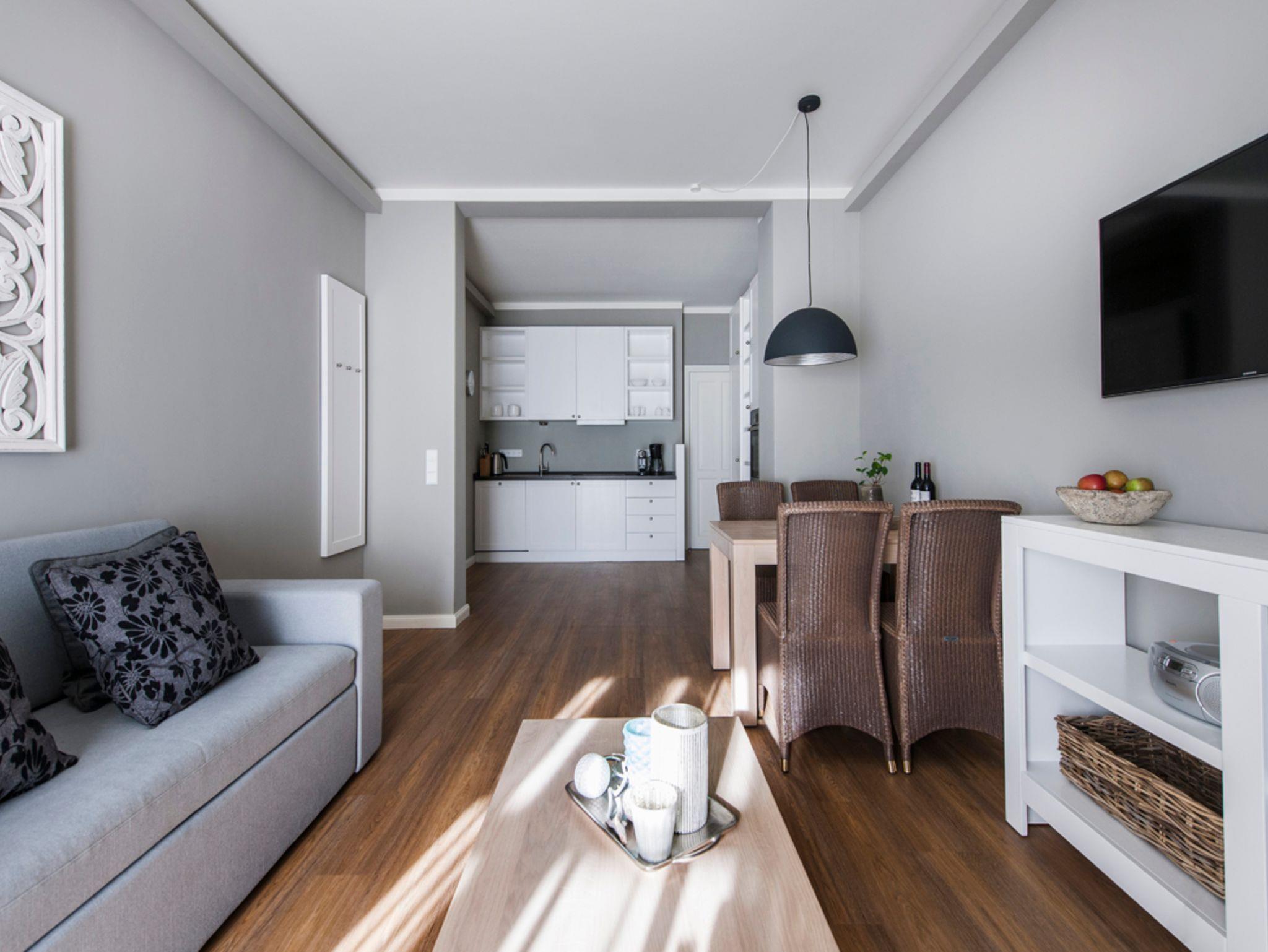 Alle unsere exklusiven Ferienwohnungen haben voll ausgestattete Küchen und großzügige Wohn- und Essräume mit allem Komfort mit großen Balkonen/Terrassen.