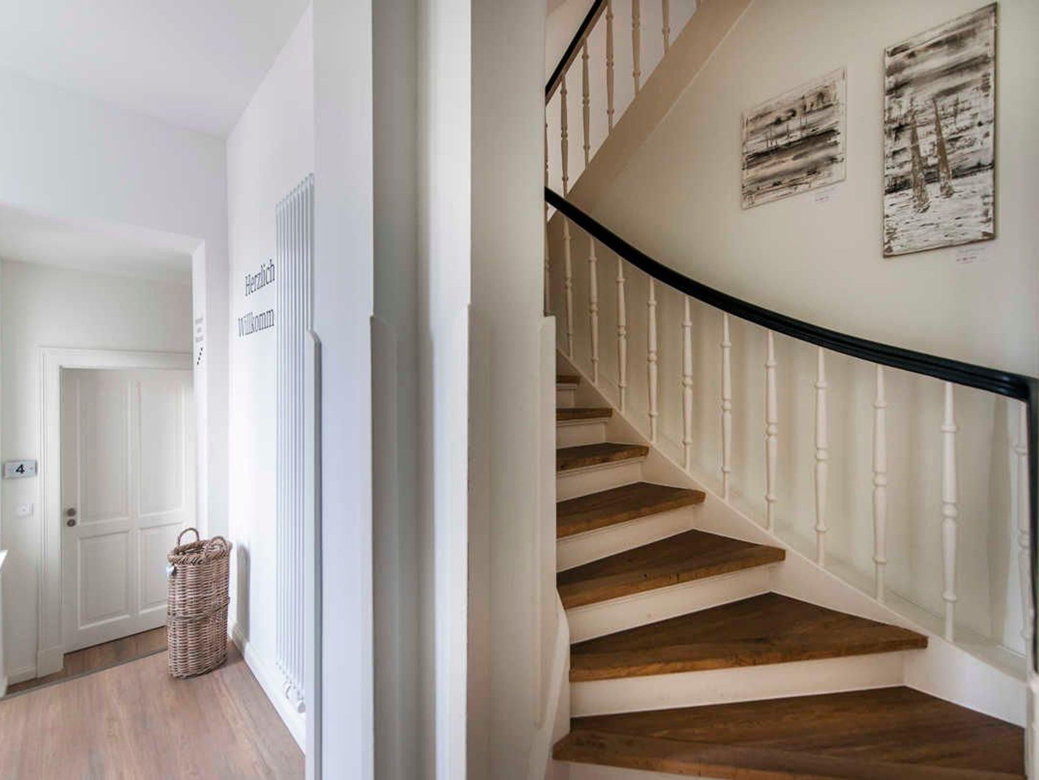 Zur Ausstattung der 55 m² großen Wohnung gehören u.a. eine komplette Küche mit Herd, Backofen, Spülmaschine, Kühlschrank mit Gefrierfach, Kaffeemaschine, Toaster, Nespresso-Maschine, Handmixer etc.; CD-Radio & Bluetooth-Lautsprecher, TV in Wohn- und Schlafzimmer (Doppelbett 180x200 m), WLAN-Hotspot, Bügeleisen und-brett, Fön, Schranksafe, etc. Alle Möbel wurden exklusiv und individuell aus Holz von einem Tischler gefertigt, ebenso die nach historischem Vorbild erstellten Fenster und Türen. Die Wohnung ist insgesamt sehr hochwertig und geschmackvoll eingerichtet und mit entsprechendem Ambiente geschmückt. Natürliche Materialien und schöne, ruhige Farben geben Ihnen ein hochwertiges Umfeld für Ihren Urlaub.