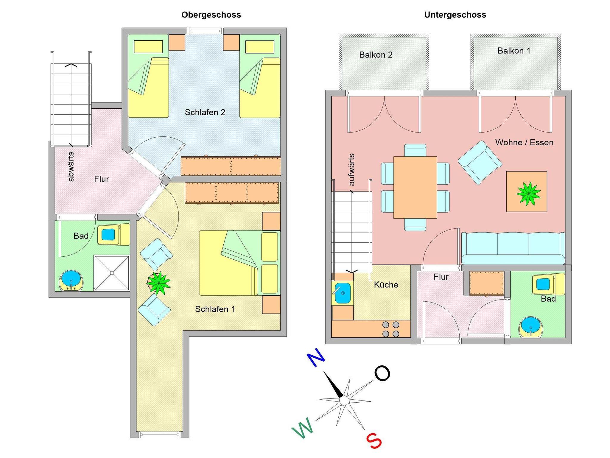 Herzlich willkommen in der Ferienwohnung Nr. 41 im Haus Ostseestrand! Die liebevoll und gemütlich eingerichtete 3-Raum-Maisonette-Ferienwohnung befindet sich im zweiten Obergeschoss des Hauses und verfügt über 2 Balkone in Nord-Ost-Richtung. Auf etwa 70 qm Wohnfläche können hier bis zu 4 Personen erholsame Urlaubstage genießen. Es empfangen Sie ein freundlicher Wohn-und Essbereich mit einer Küchenzeile, zwei Schlafzimmer, ein Duschbad sowie ein Gäste-WC. Beide Etagen der Wohnung sind mit hochwertigen antiallergischen und hygienischen Designer-Vinyl ausgestattet.