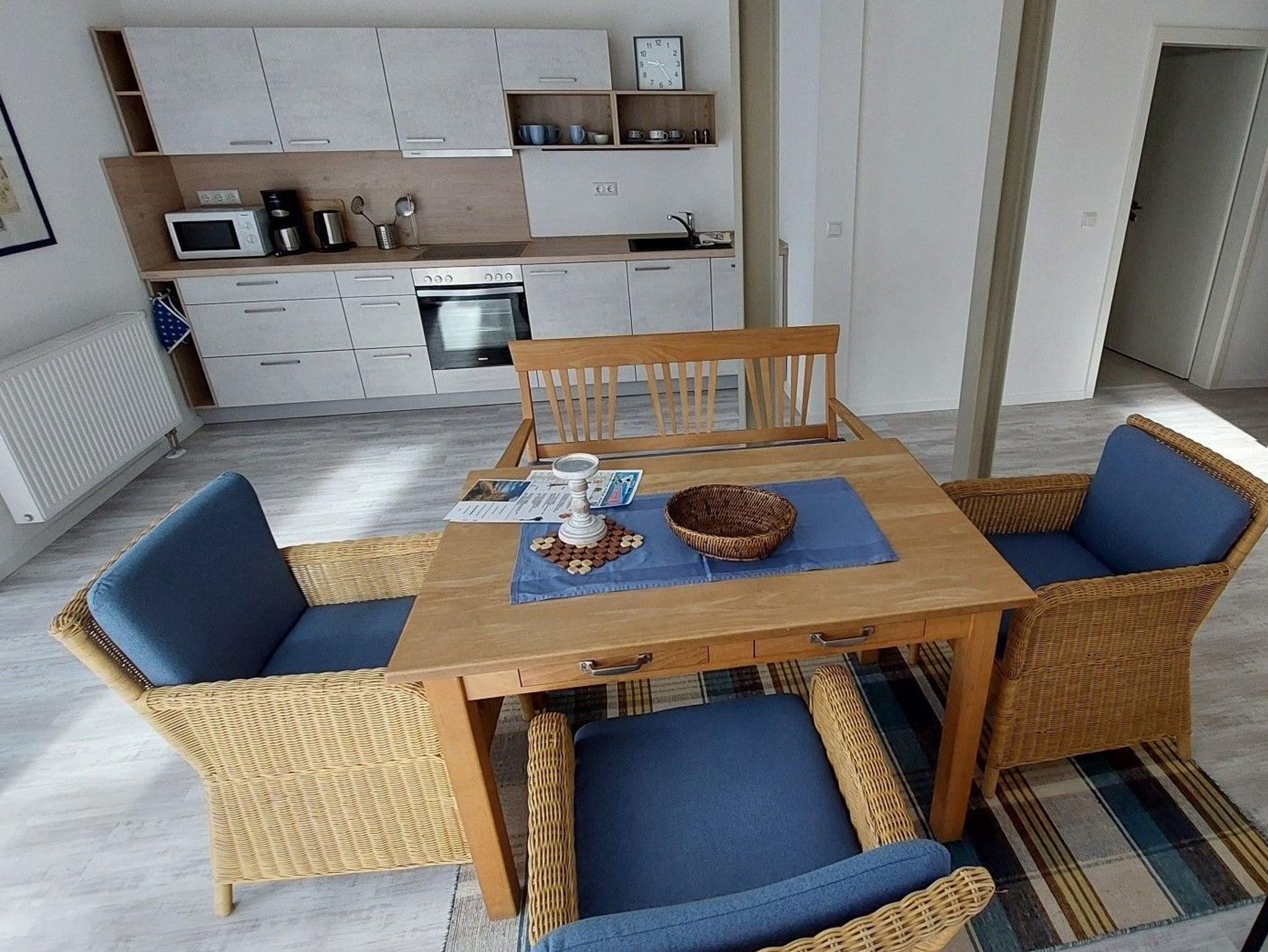 Über die große, möblierte Terrasse gelangen Sie in den komfortabel ausgestatteten Wohn- / Essraum. Der Küchenbereich ist mit Kühlschrank, Backofen, Spülmaschine, Vierplattenherd, Kaffeemaschine, Toaster, Wasserkocher und ausreichend Geschirr ausgestattet, so dass Sie auch im Urlaub, wenn Sie viel Zeit und Lust haben, ab und zu selbst kochen können.