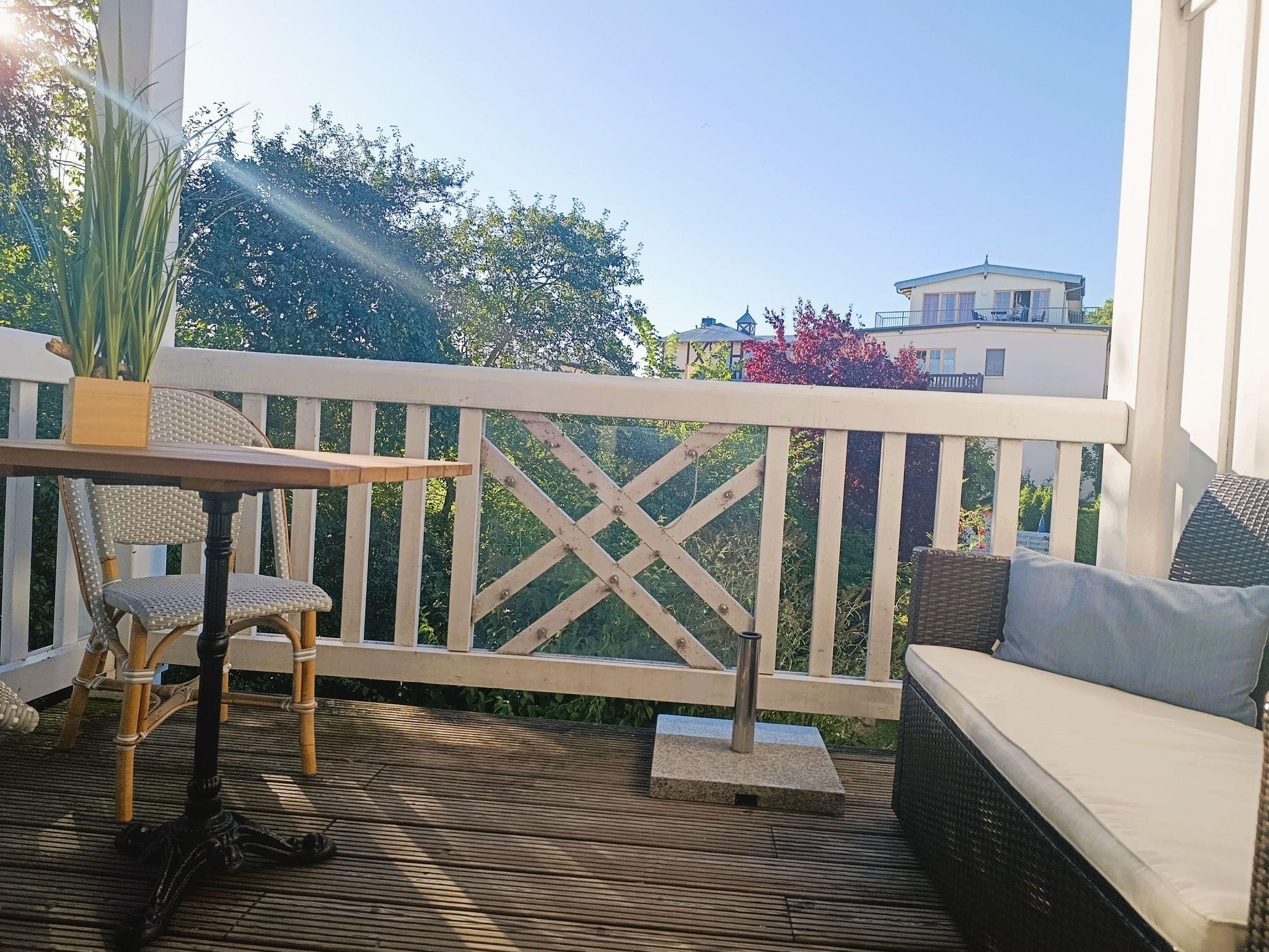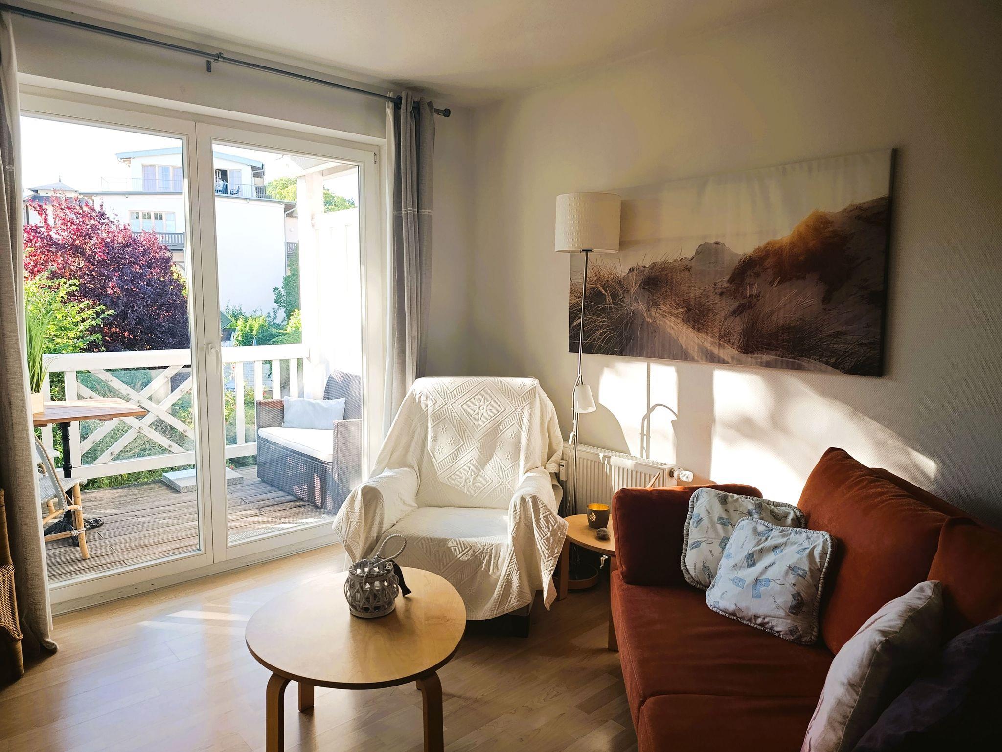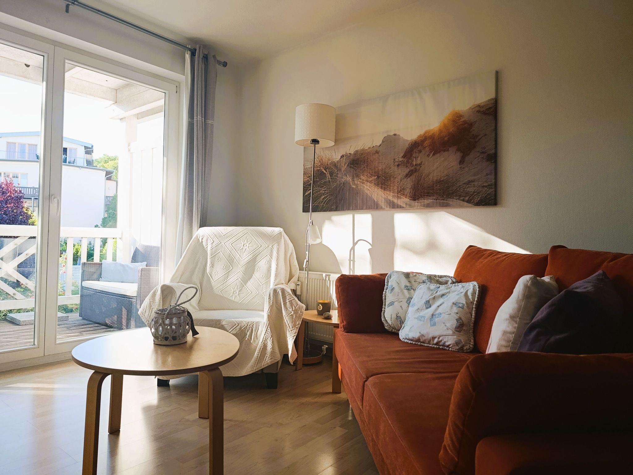Moderne 2-Zimmer-Ferienwohnung in Kühlungsborn, nur 100 m vom Ostseestrand entfernt, mit Balkon und komfortabler Ausstattung.