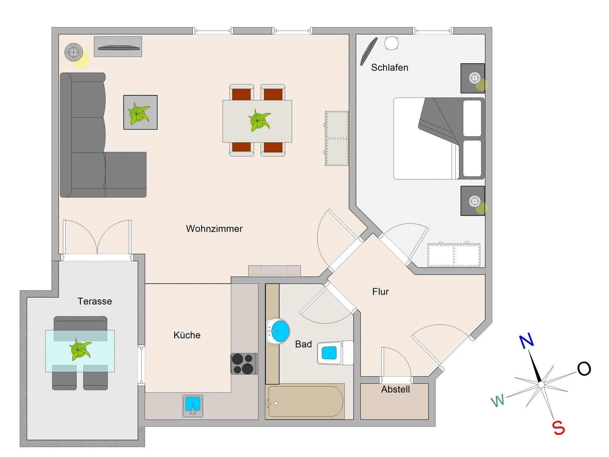 Die liebevoll eingerichtete 2-Raum-Ferienwohnung befindet sich im Erdgeschoss des Strandhus und ist für bis zu 4 Personen eingerichtet. Mit einer Größe von 69 m² bietet die Wohnung mit einem offenen Wohn- und Essbereich mit Küchenzeile, einem Schlafzimmer und einem Badezimmer sowie einer großen Sonnenterrasse viel Platz für einen erholsamen Ostseeurlaub.