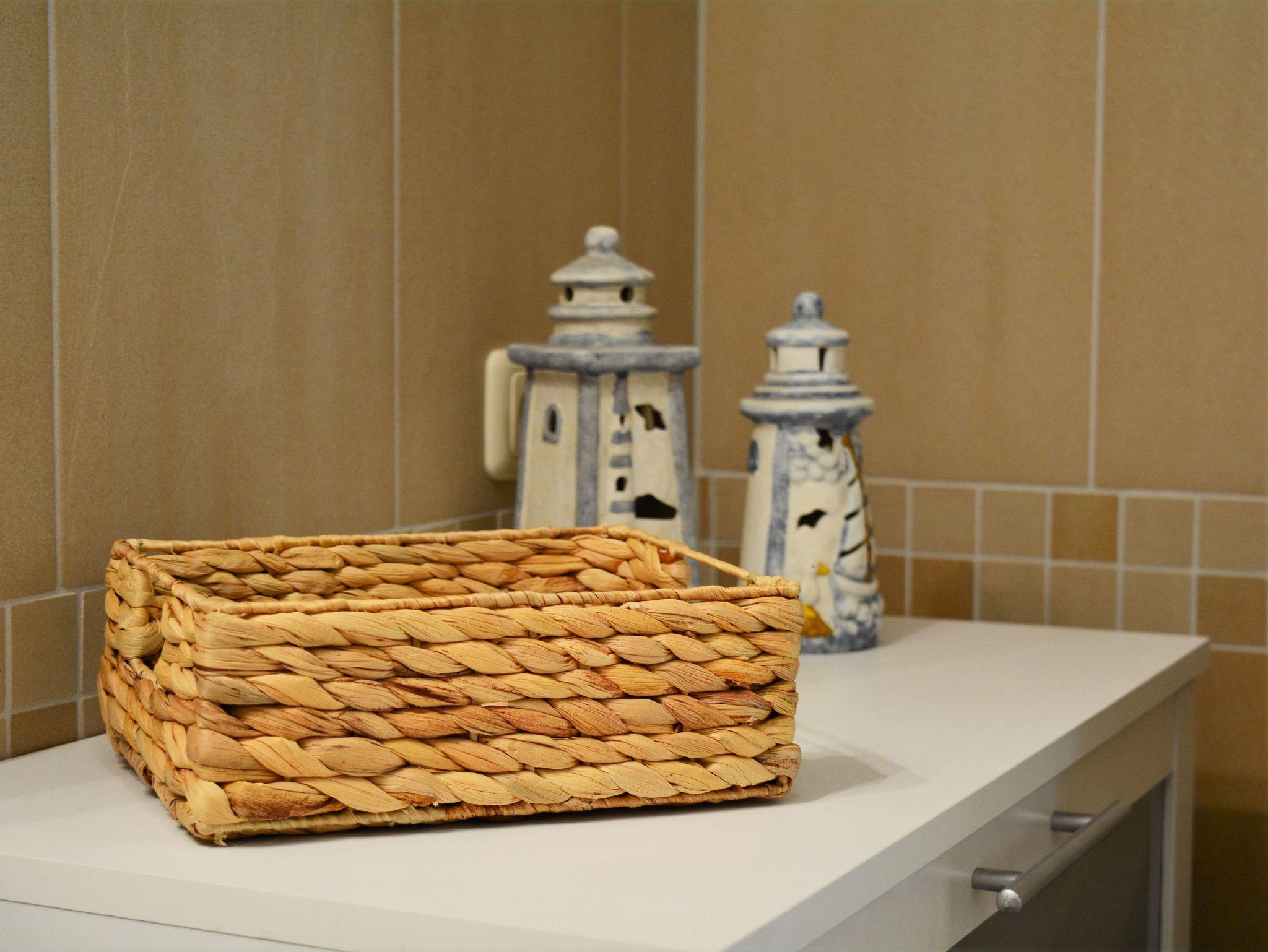 Das geflieste Bad ist ausgestattet mit einer Badewanne mit Duschfunktion, einem großem Waschbecken und einem WC sowie genügend Ablagefläche und Stauraum für Ihre Badutensilien.