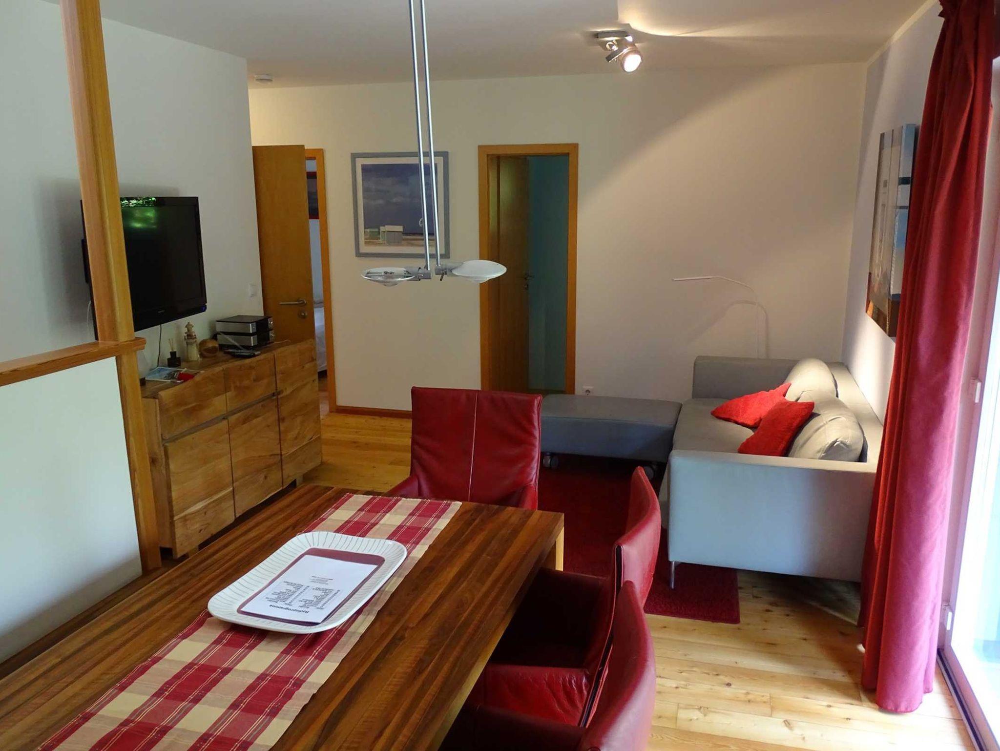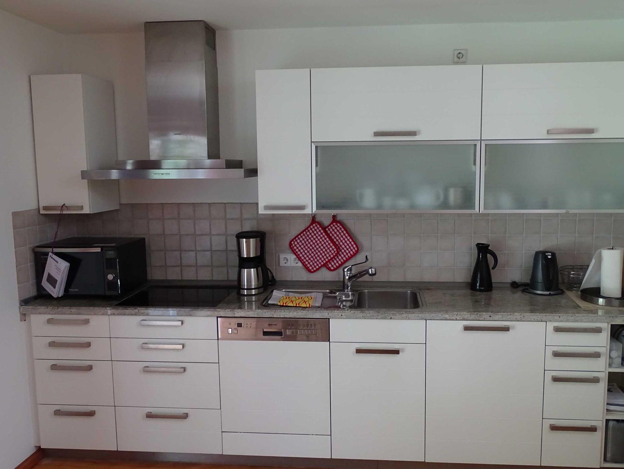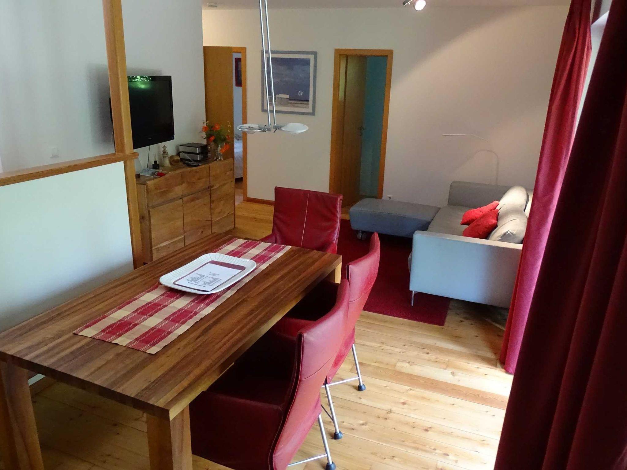 Sie betreten die Ferienwohnung direkt in den großzügigen und anspruchsvoll ausgestatteten Wohn-/Essraum mit großer Küchenzeile und Balkon in Ost-Ausrichtung. In dieser Ebene befindet sich ein Schlafzimmer mit zwei Einzelbetten sowie ein Schlafzimmer mit Ausziehcouch für 1 bis 2 Personen. Ein Bad mit großem Waschbecken und Dusche finden Sie hier ebenfalls vor. Über eine interne Treppe kommen Sie ins sonnendurchflutete Türmchen. Hier haben Sie Zutritt zur sehr großzügigen, neu gebauten Südterrasse. Im Inneren finden Sie ein rundum belichtetes kleines Wohnzimmer sowie ein Doppelschlafzimmer mit anschließender Toilette vor.