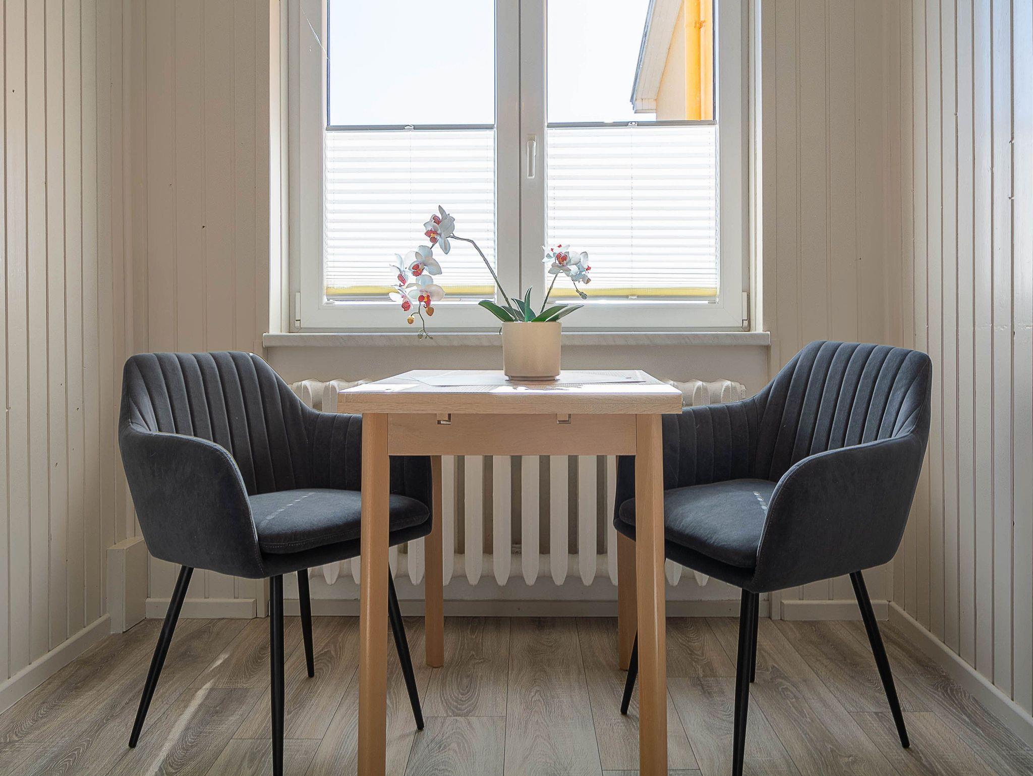 Die liebevoll eingerichtete 2-Raum-Ferienwohnung ist 60qm groß, wurde 2024 frisch renoviert und bietet ausreichend Platz für 2 Personen. Die helle freundliche Wohnung befindet sich im Erdgeschoss der Villa Paula und verfügt über ein Wohnzimmer, ein Schlafzimmer, eine separate Küche sowie ein Tageslichtbad.