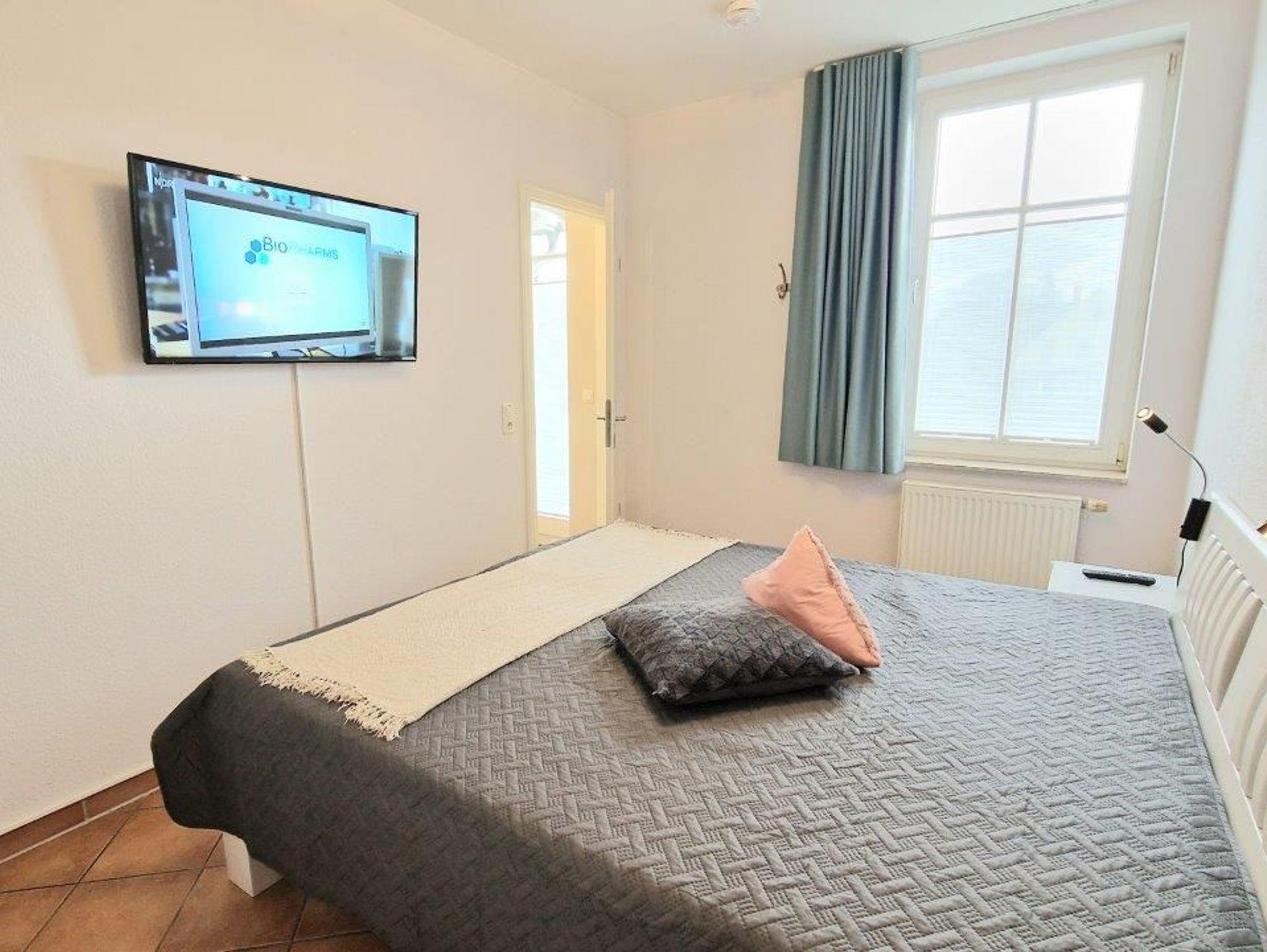 - 1. Schlafzimmer mit Doppelbett, Kleiderschrank und TV