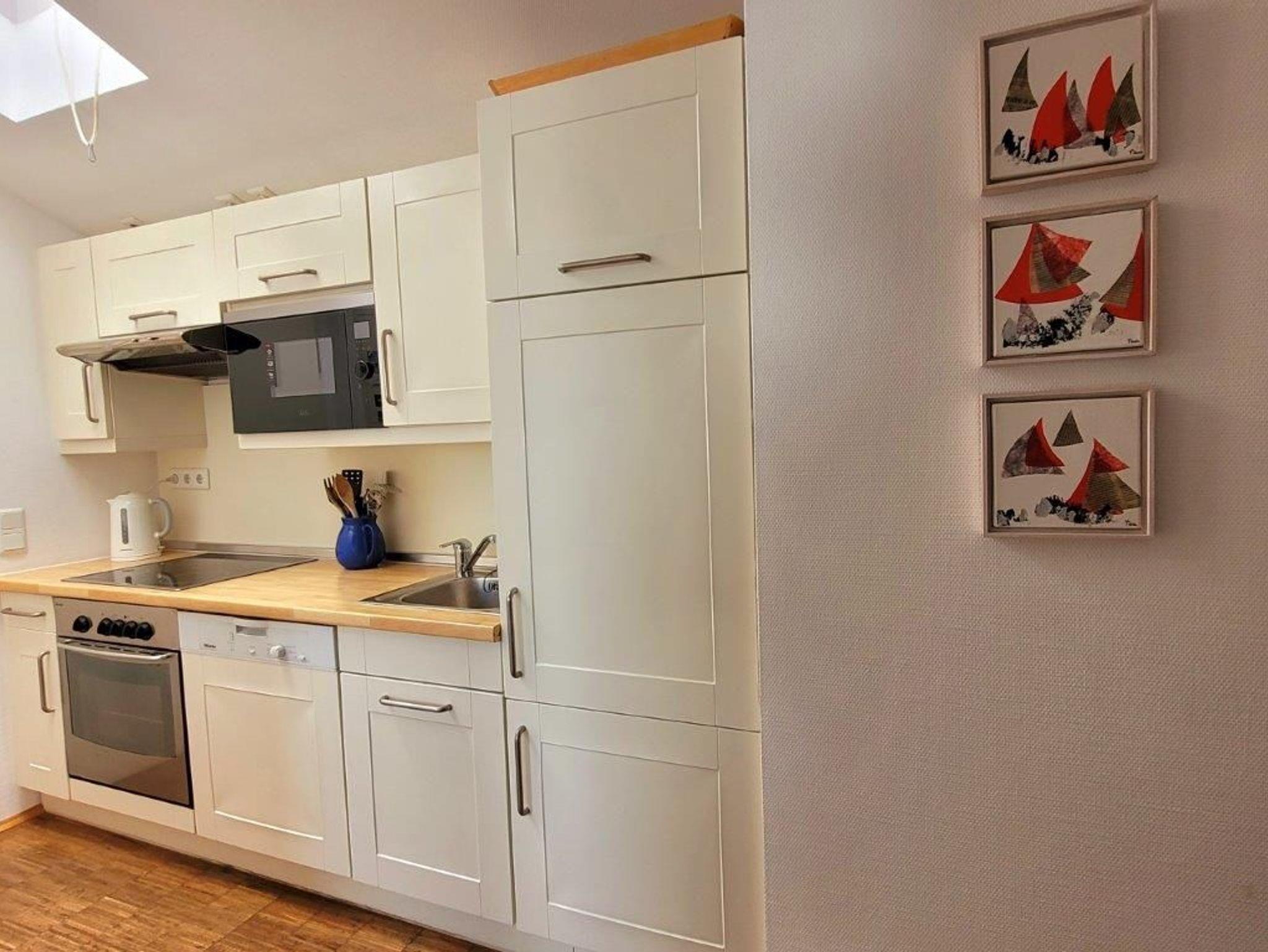 - Küche - Herd mit Backröhre, Mikrowelle, Kühlschrank und Geschirrspüler