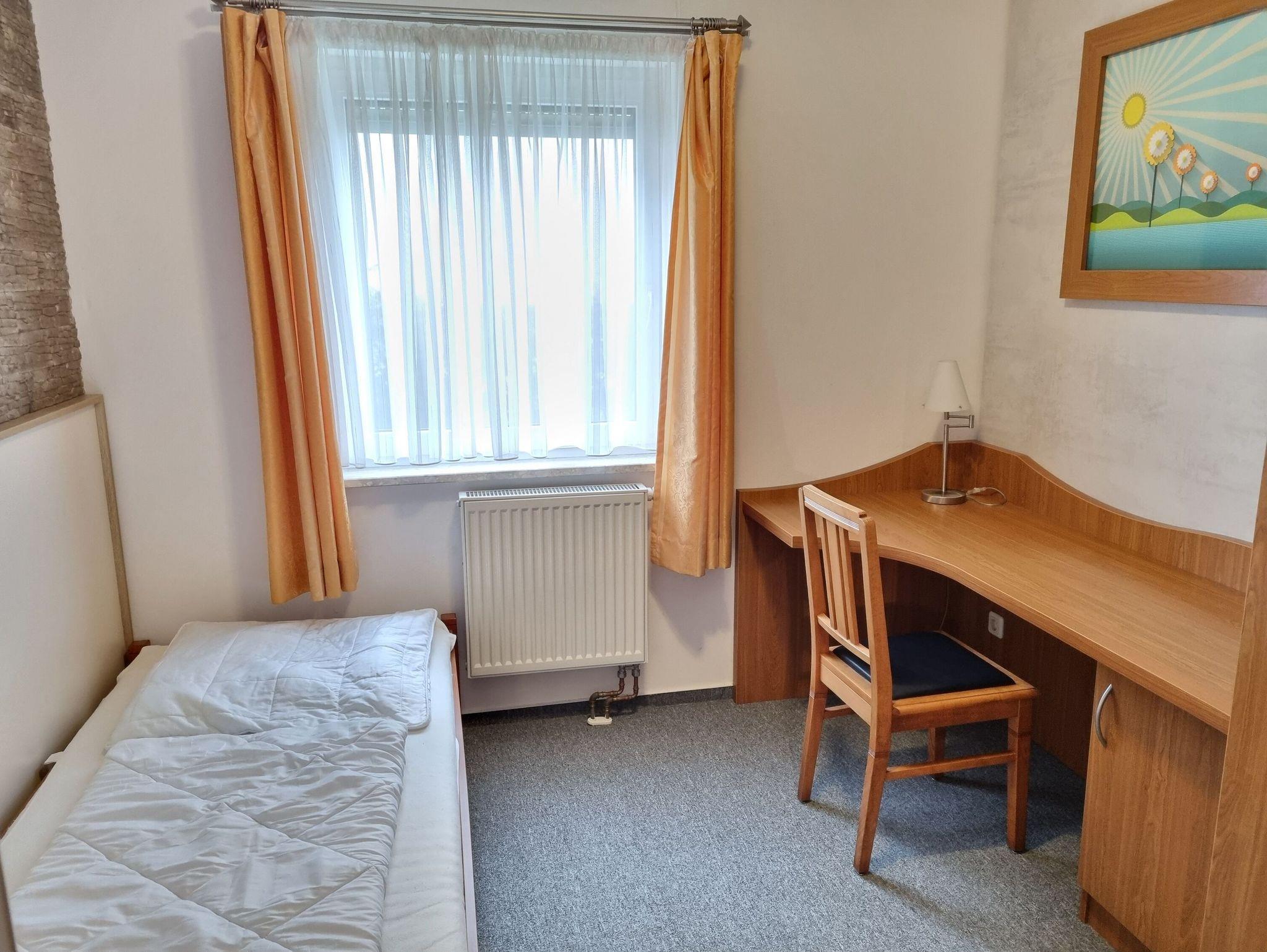 Im zweiten Schlafzimmer befindet sich ein Einzelbett, ein Schreibtisch und ein Radio.