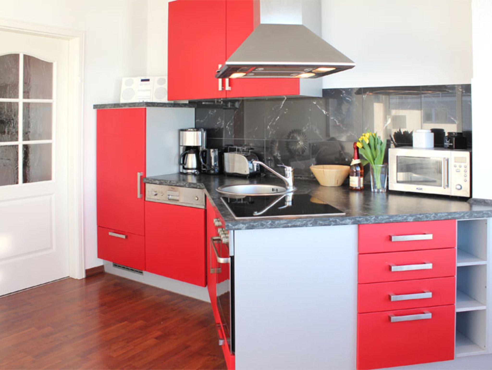 - Küche - Herd mit Backröhre, Mikrowelle, Kühlschrank mit Gefriermöglichkeit und Geschirrspüler