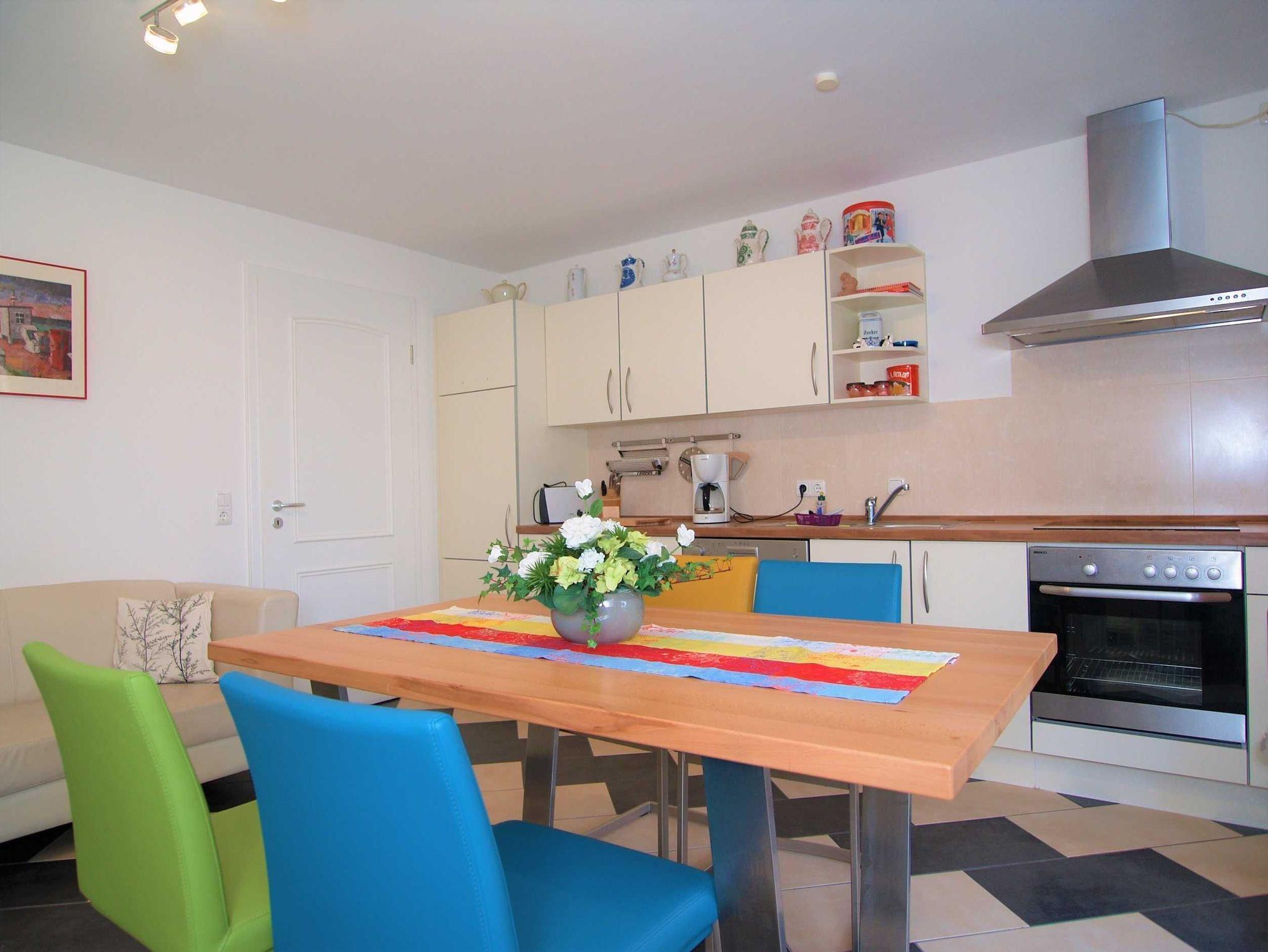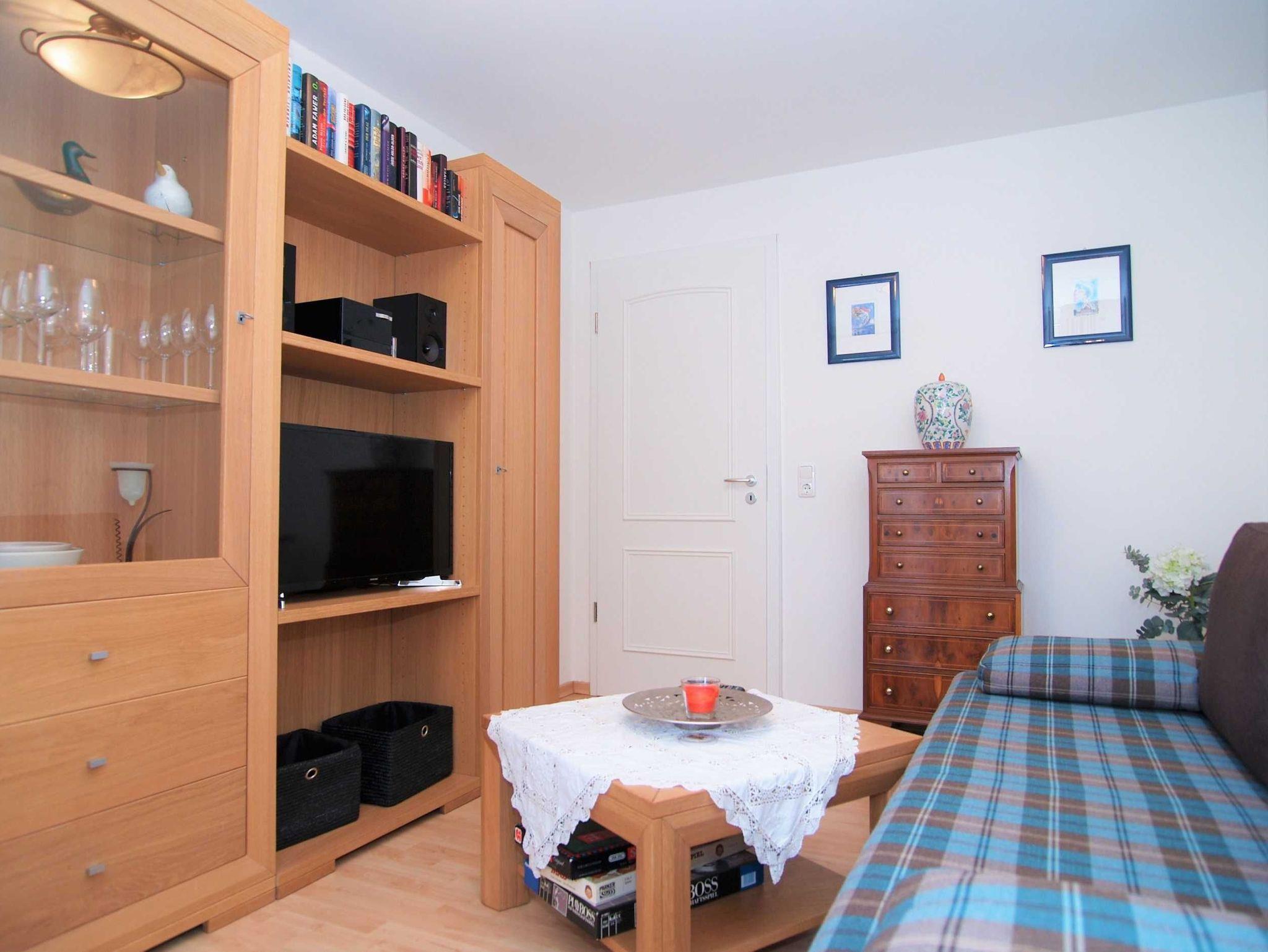Sie wohnen in einer ca. 60 m² großen 2-Raum-Ferienwohnung, die sich im Erdgeschoss der Villa Josephine befindet und für 2 bis 4 Personen geeignet ist. Der Wohnraum ist ausgestattet mit einem Korbsessel, Flachbild-TV sowie einer Schlafcouch, die Platz für zwei weitere Gäste bietet. Die separate Wohnküche ist voll ausgestattet u.a. mit einem 4-Platten-Ceranfeld und Backofen, Dunstabzugshaube, Geschirrspüler, Kühlschrank, Wasserkocher, Kaffeemaschine, Toaster sowie alle wichtigen Küchenutensilien, die Sie für ein perfektes Dinner benötigen. Außerdem befindet sich in der großzügig gestalteten Küche ein Esstisch mit 4 Stühlen, eine kleine Couch und ein zweiter Flachbild-Fernseher. Von hier betreten Sie die möblierte Nord-Terrasse (u.a. Strandkorb), auf der Sie den Tag ausklingen lassen können. Das Schlafzimmer mit Doppelbett und großem Kleiderschrank sowie das Bad mit Dusche und WC vervollständigen das Gesamtbild dieser Wohnung.