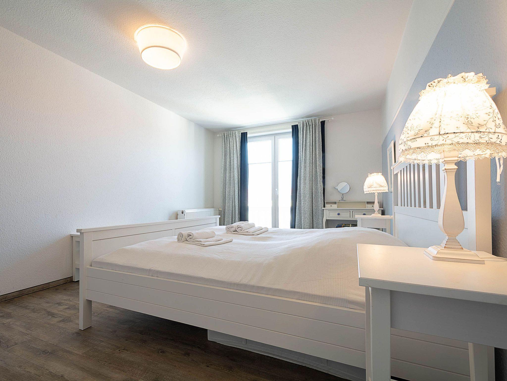 Hier kann Ihr Ostseeurlaub beginnen! In der dritten Etage des Strandschlösschens begrüßt Sie eine liebevoll und maritim eingerichtete 2-Raum-Ferienwohnung, die mit 62qm Größe für 2 Personen großzügig gestaltet ist. Der helle freundliche Wohnbereich besticht durch seine moderne Einrichtung, die gemütliche maritime Couchgarnitur, einen Flachbild-TV mit DVD-Player, Stereoanlage sowie ein kleines Angebot ausgewählter Urlaubslektüre. Auf nahezu 30qm Wohnraum lässt es sich hier auch an kalten Tagen richtig schön aushalten. Vom Wohnbereich betreten Sie den nach Westen ausgerichteten Balkon, der mit Terrassenmobiliar ausgestattet ist und zum Sonnetanken und Relaxen einlädt. Dem Wohnbereich schließt sich der Essbereich sowie die offene Küchenzeile an. Die modern ausgestattete Küche bietet alle wichtigen Küchengeräte, die Sie für Ihr „perfektes Dinner“ benötigen: 2-Platten-Cerankochfeld mit Dunstabzugshaube, Backofen, Geschirrspüler, Kühlschrank, Kaffeemaschine, Wasserkocher und Toaster sind vorhanden. Das Schlafzimmer ist mit etwa 20qm Größe ebenfalls sehr großzügig gestaltet. Es ist ausgestattet mit einem Doppelbett, einem großzügigen Kleiderschrank für Ihre Urlaubsgarderobe und bietet ebenfalls einen Zugang zum möblierten Balkon. Das Bad mit Dusche und WC rundet das Gesamtbild dieser Wohnung ab.