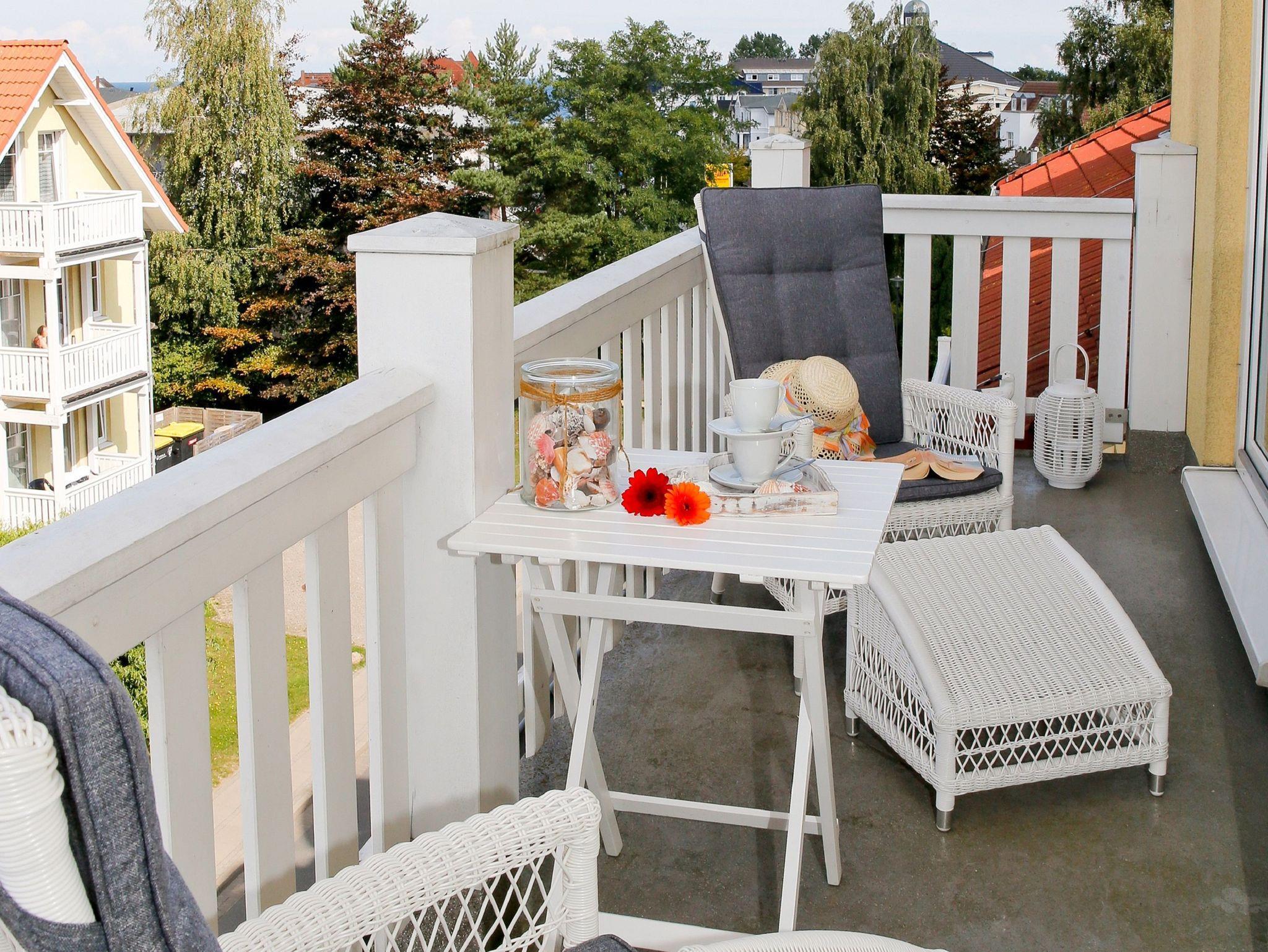 Maritim eingerichtete 2-Zimmer-Ferienwohnung in Kühlungsborn, zentral und strandnah mit Balkon und kostenlosem Parkplatz.
