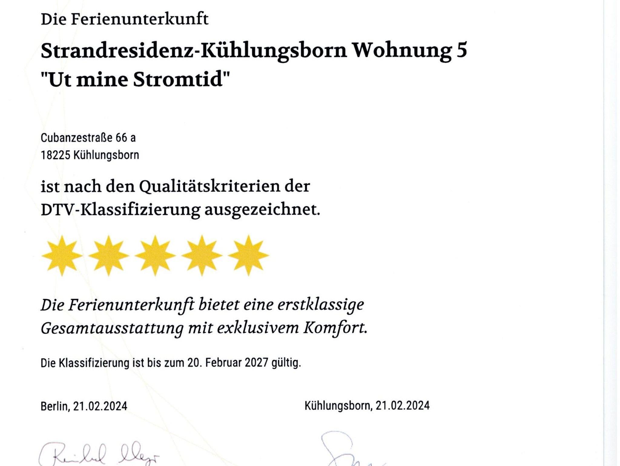 Die 7 Wohnungen gehören zu den Flaggschiffen der vom DTV zertifizierten deutschen Ferienwohnungen mit 1.216 bis zu 1.331 vergebenen Punkten. 5 Sterne gibt es ab 900 Punkte.