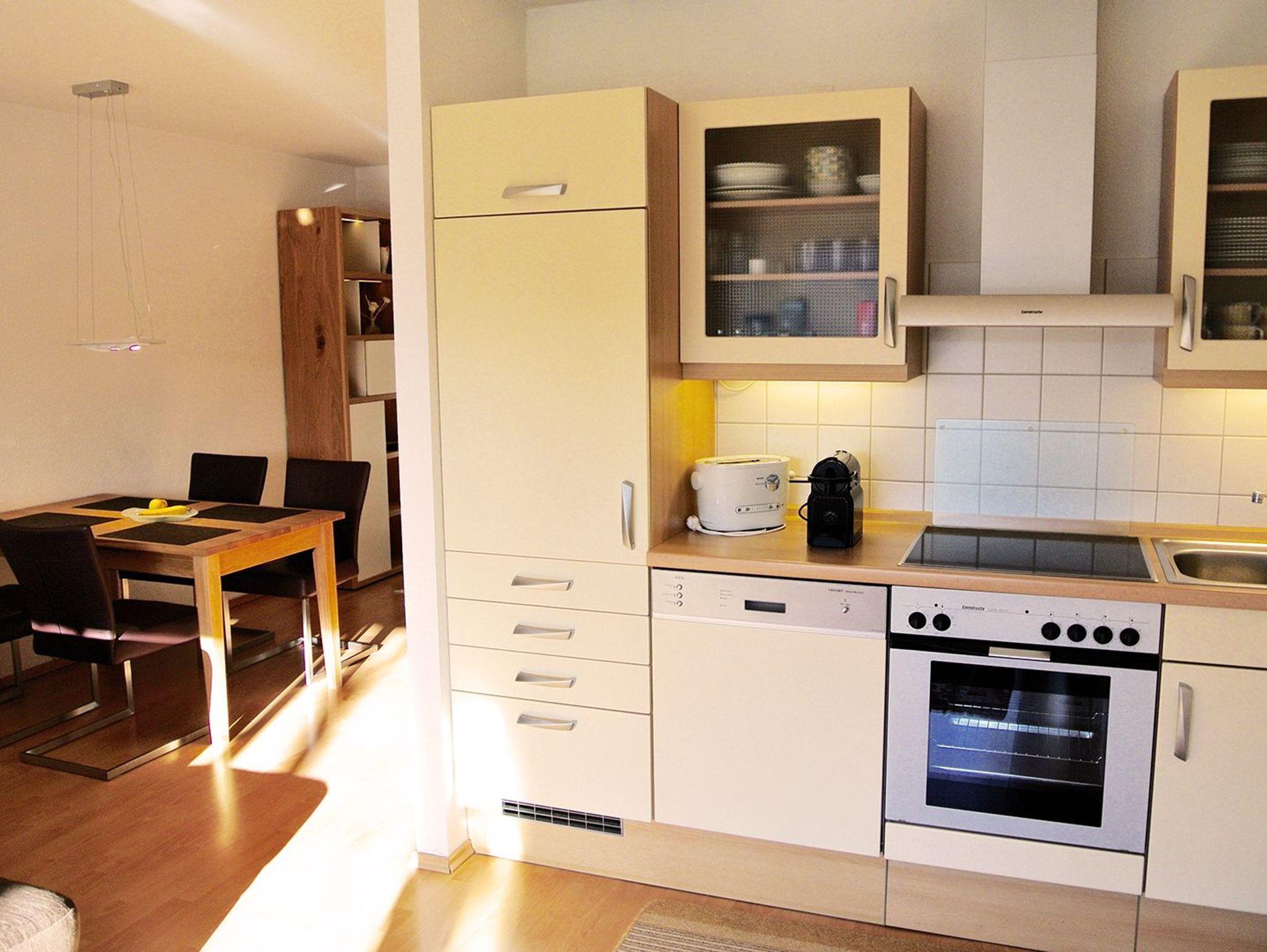 Zusätzlich finden sie im Wohnbereich eine Sitzgruppe mit Esstisch. Die moderne Küche ist mit einem Geschirrspüler ausgestattet.