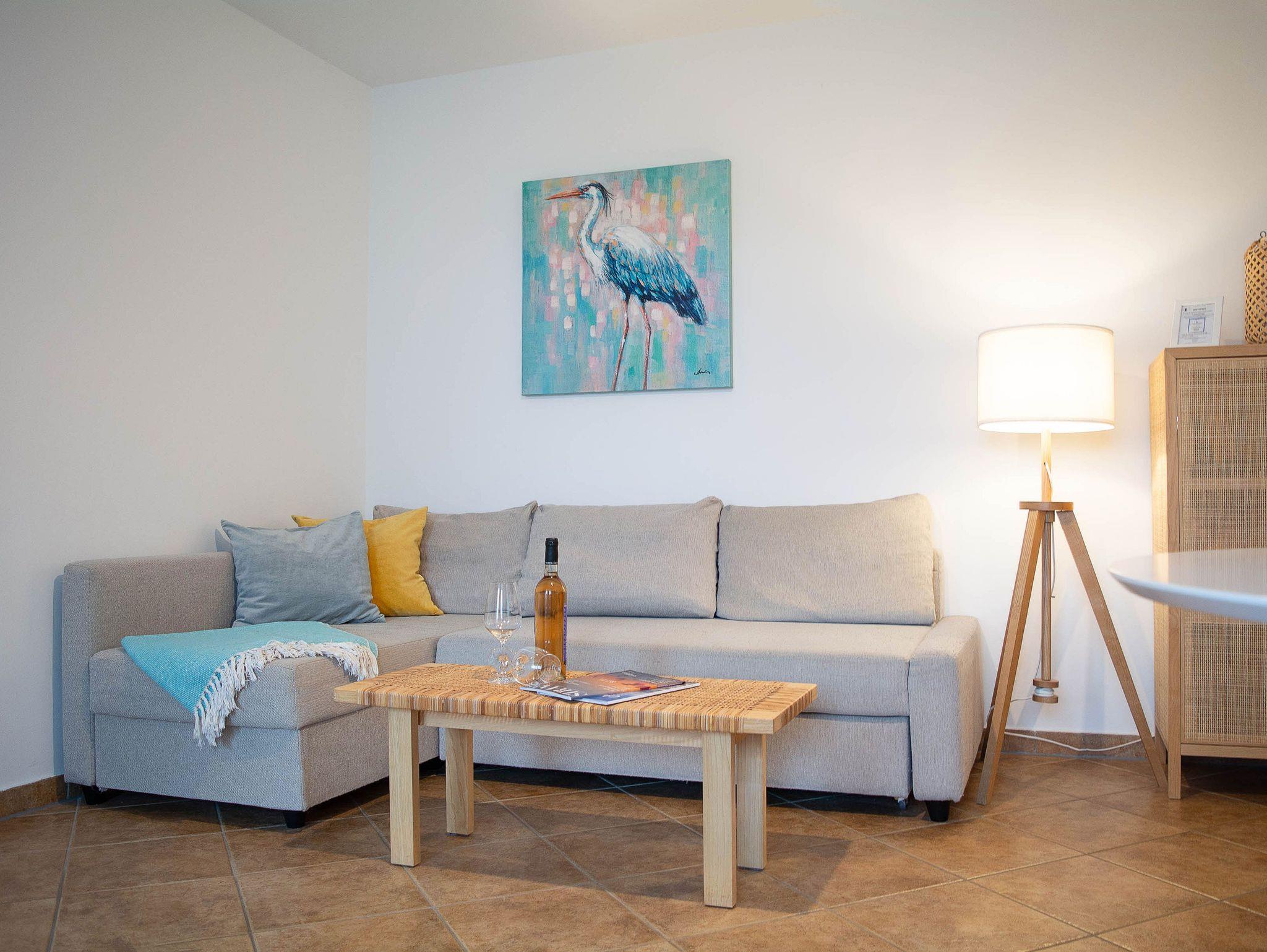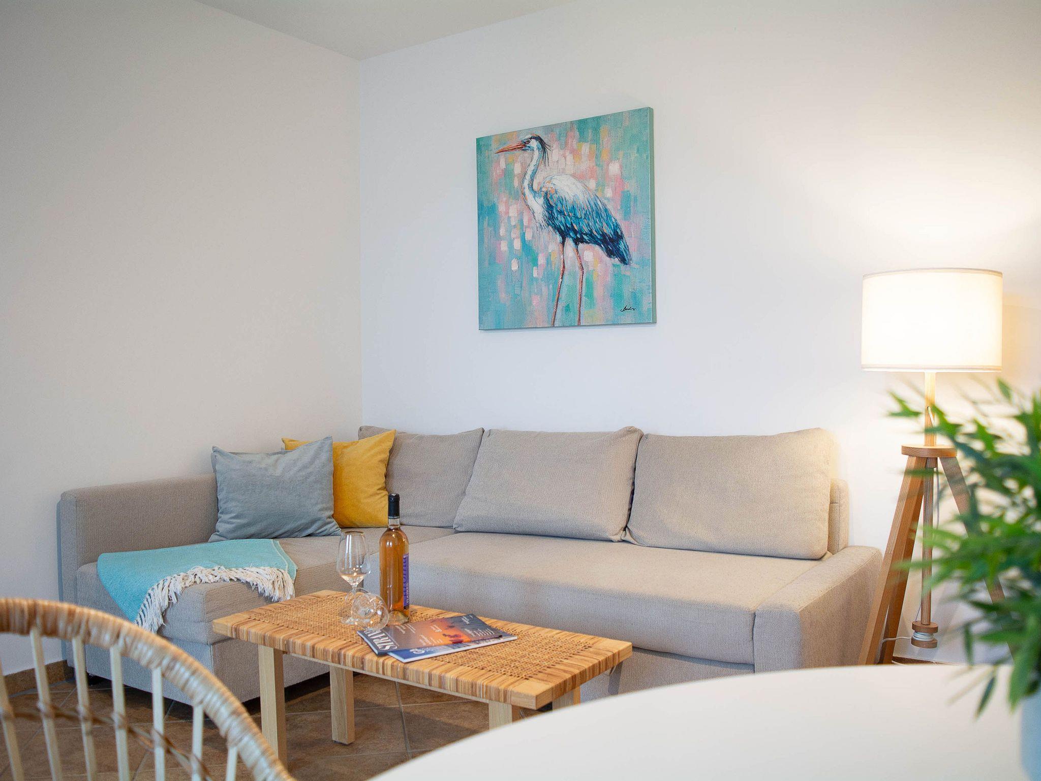 Im separaten Schlafzimmer lädt ein hochwertiges Boxspring-Doppelbett ( 1,60m) zum erholsamen Schlaf ein. Ein zweiter Flachbildfernseher sorgt auch hier für Unterhaltung, während ein geräumiger Kleiderschrank und eine Kommode ausreichend Stauraum für Ihre Urlaubsgarderobe bieten. Auf Wunsch findet auch ein Kinderreisebett im Schlafzimmer Platz.
