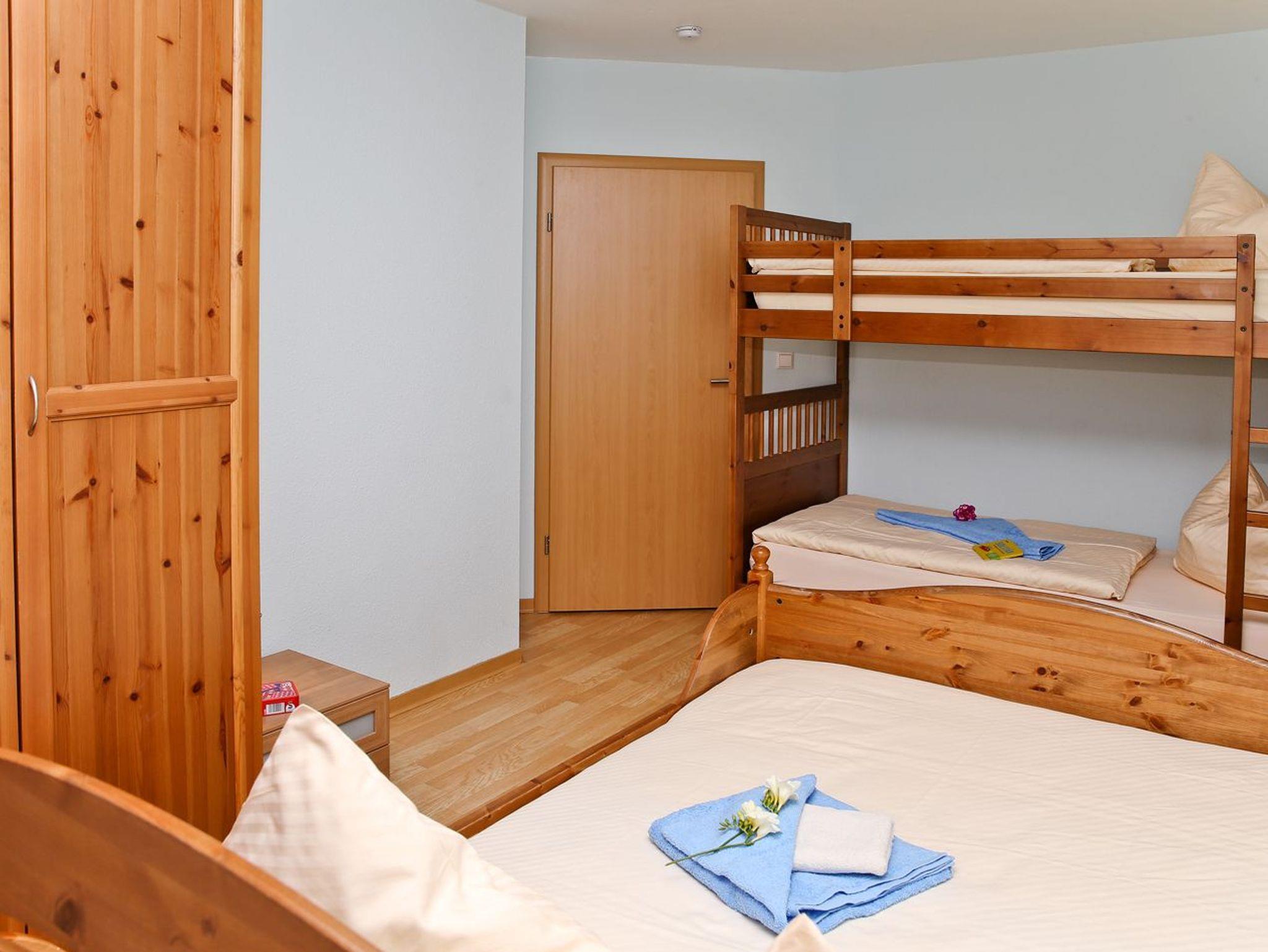 Das eine Schlafzimmer bietet ein Doppelbett (1,80 m breit) sowie Kleiderschrank. Das zweite Schlafzimmer bietet ein Etagenbett und ein Doppelbett (1,40 m breit).