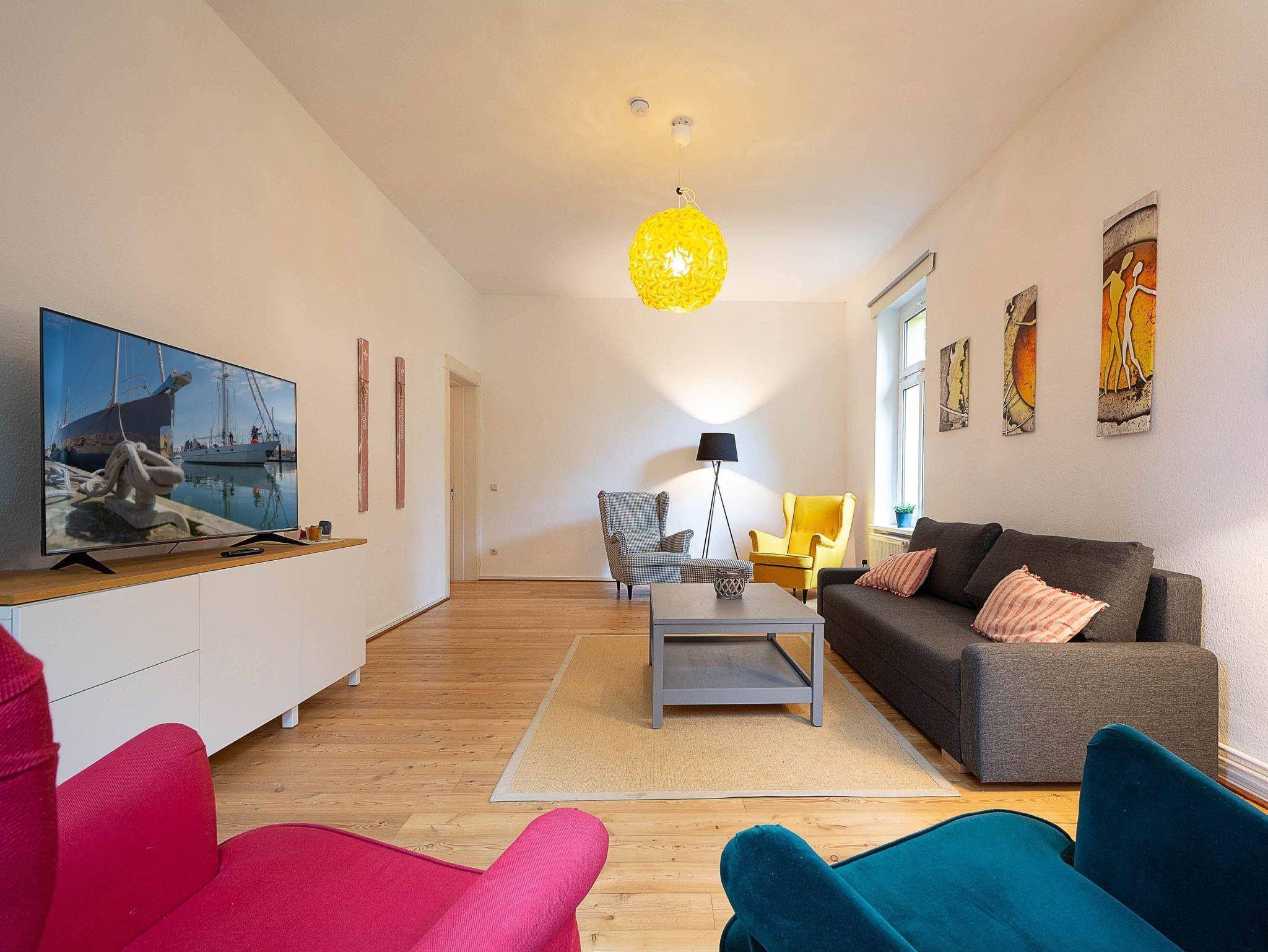 Herzlich willkommen in der Wohnung Nr. 01 in der Villa Huberta! Die helle freundliche 4-Raum-Ferienwohnung befindet sich im Hochparterre der wunderschönen Jugendstilvilla und bietet auf 110 qm Platz für 6 Personen. Die Wohnung verfügt über 3 Schlafzimmer, 2 Bäder, eine separate Küche und eine Süd-Terrasse. Die gesamte Ferienwohnung ist mit hochwertigem Echtholzfußboden ausgestattet, der für eine warme und einladende Atmosphäre sorgt.