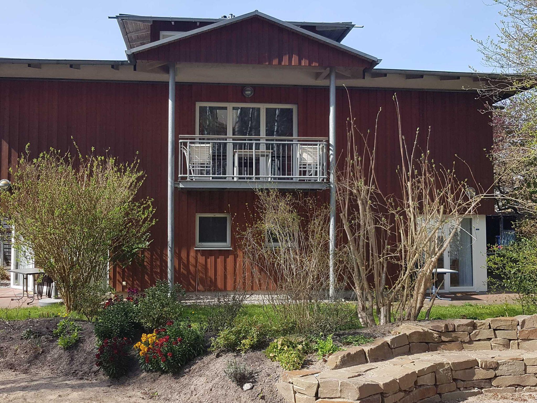 Unsere Ostsee-Ferienwohnung Möwe für zwei Personen befindet sich im ersten Obergeschoss des Waldhauses im hinteren Teil unseres großen Gartengrundstücks, direkt am Stadtwald.