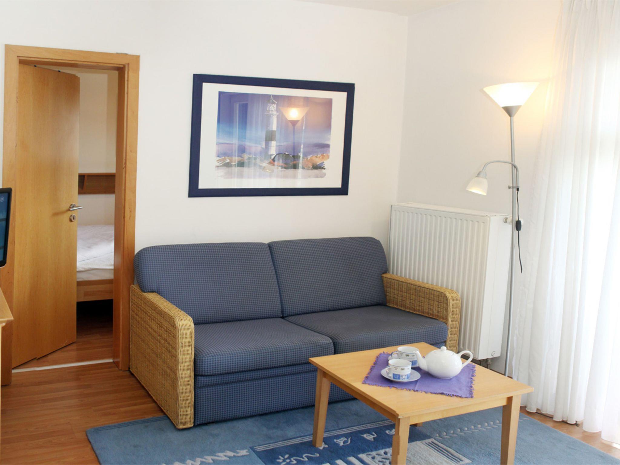 Gemütliche Ferienwohnung Möwe mit Südbalkon, nahe Strand und Stadtwald in Kühlungsborn, ideal für erholsame Ostseeferien.