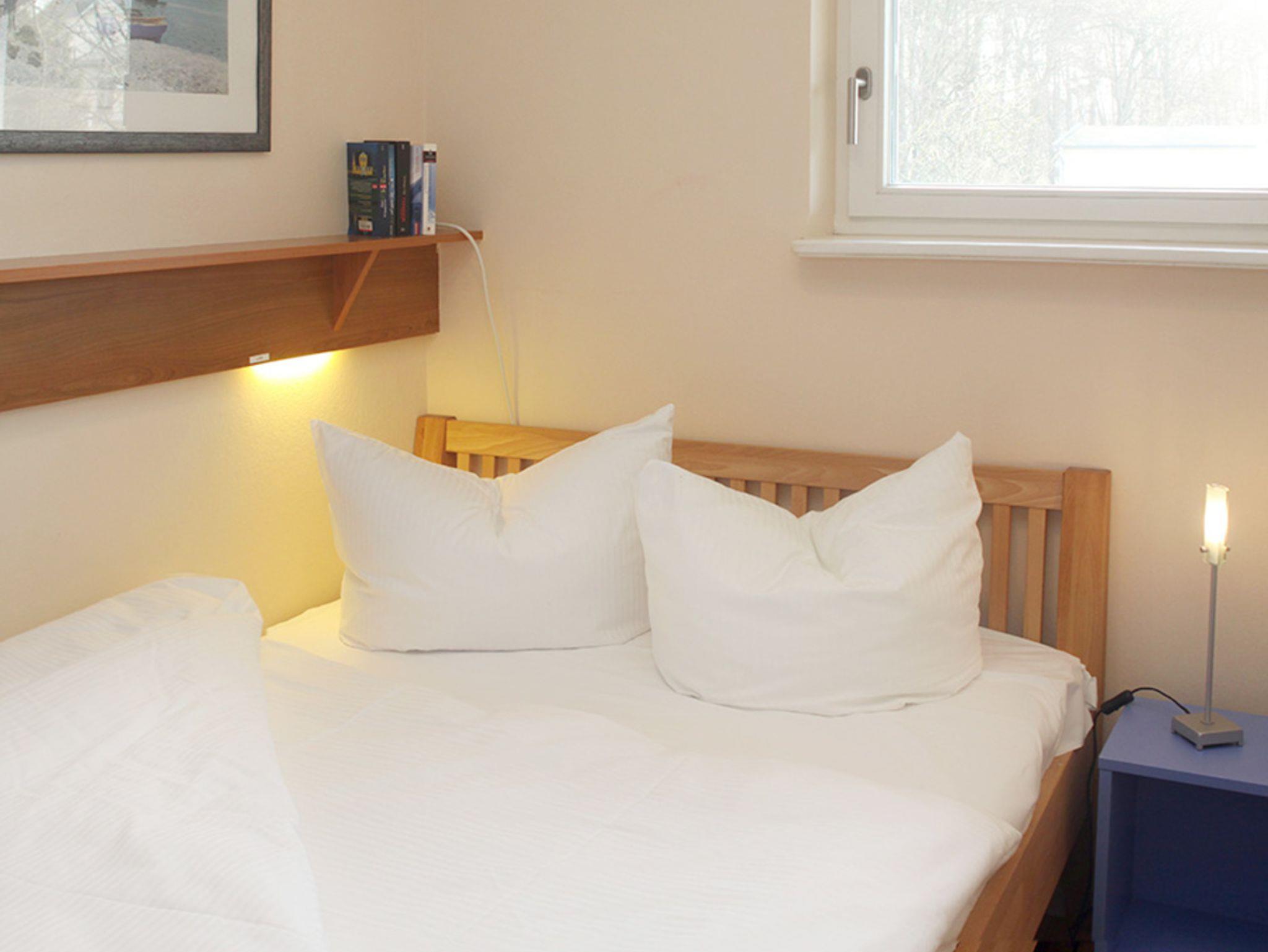 Das Schlafzimmer liegt sehr ruhig, weit weg vom hektischen Treiben und garantiert einen erholsamen Ostseeurlaub.