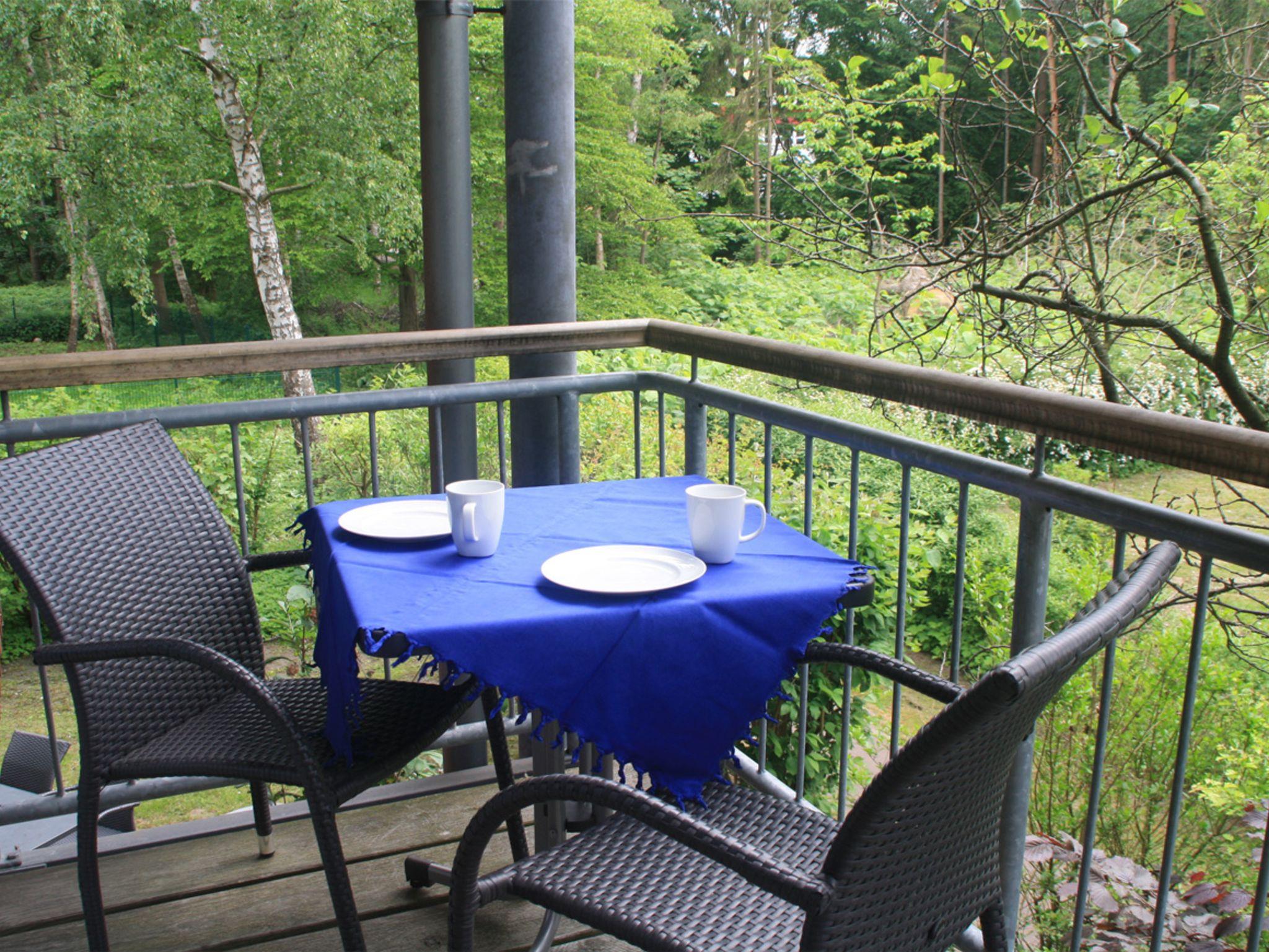 Genießen Sie den ganzen Tag den Sonnenschein auf dem ruhigen Südbalkon der Ferienwohnung Möwe. Wir wünschen viel Erholung direkt am Waldrand.